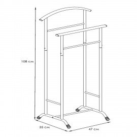Вешалка напольная для одежды индивидуального пользования. Подходит для хранения одежды, ее сушки и отпаривания. Вместительная за счет плечиков и штанг. Компактность и функциональность позволяют ее эксплуатацию дома, в офисе, гостиницах и кафе.