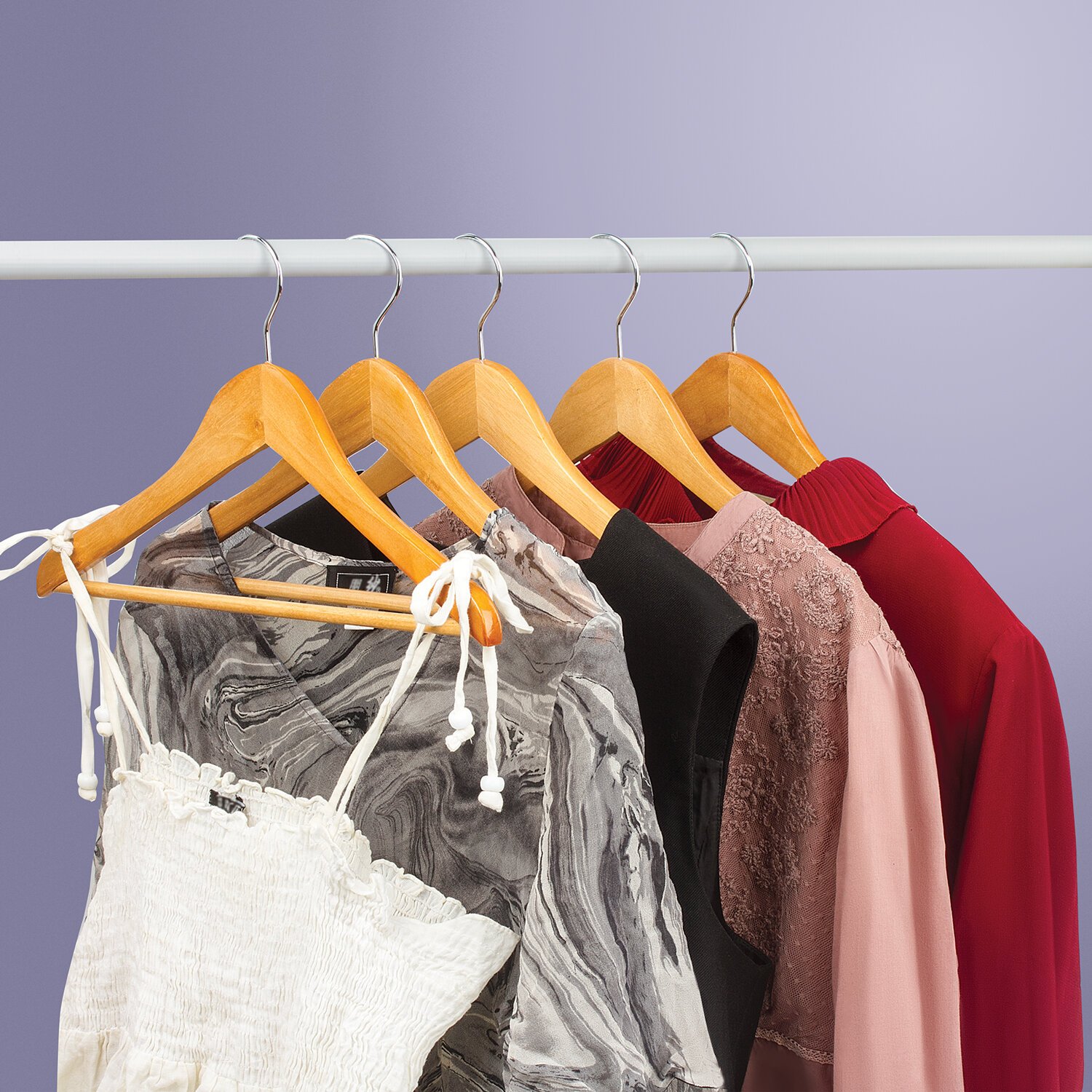 Изготовлены из натурального дерева. Лакированные, с невыкручивающимся крючком. Предназначены для бережного хранения одежды. Обладают долговечностью и прочностью, не прогибаются под тяжелой верхней одеждой. Эстетичны, отлично вписываются в общий интерьер гардеробной. Размер модели составляет 45 см. 5 штук в комплекте.