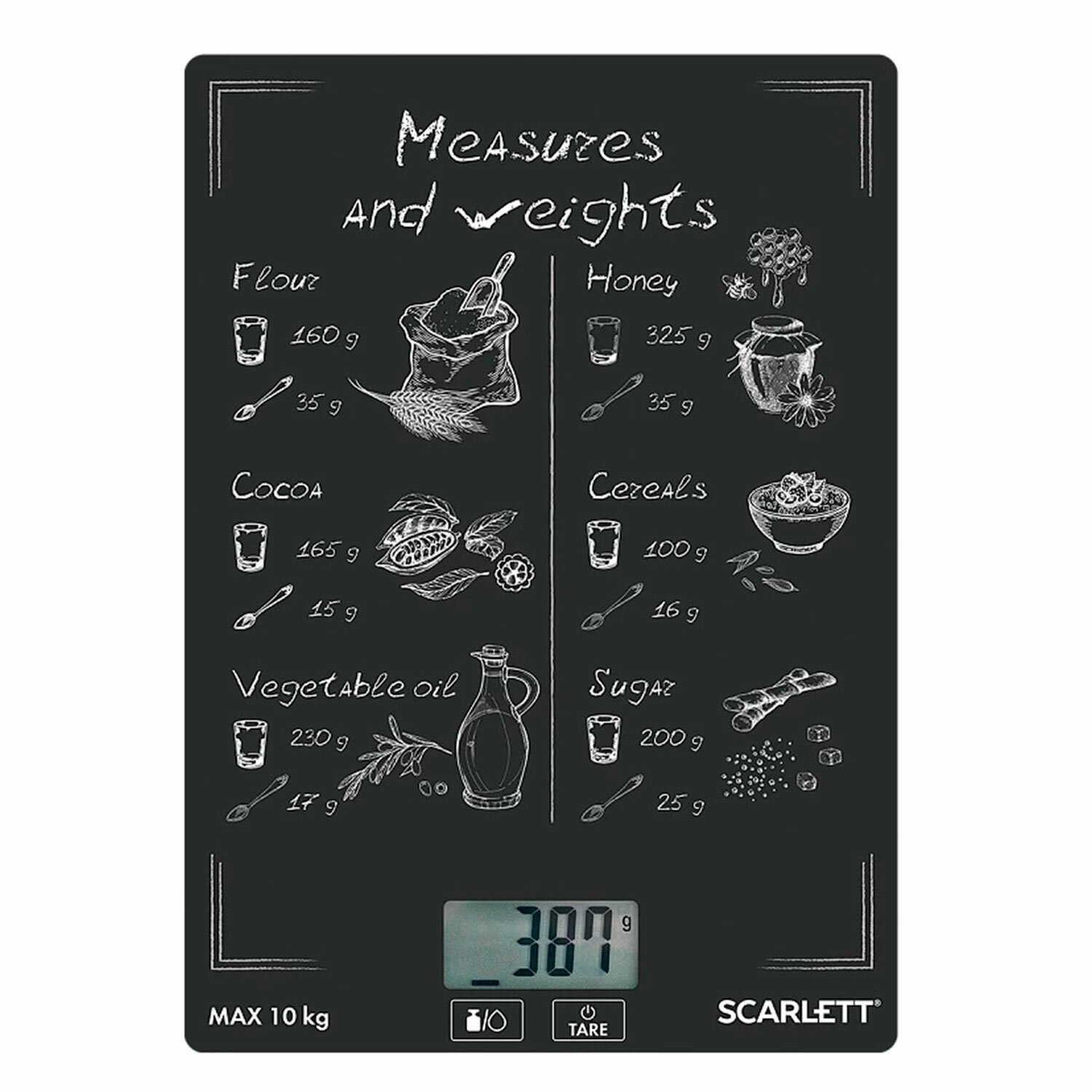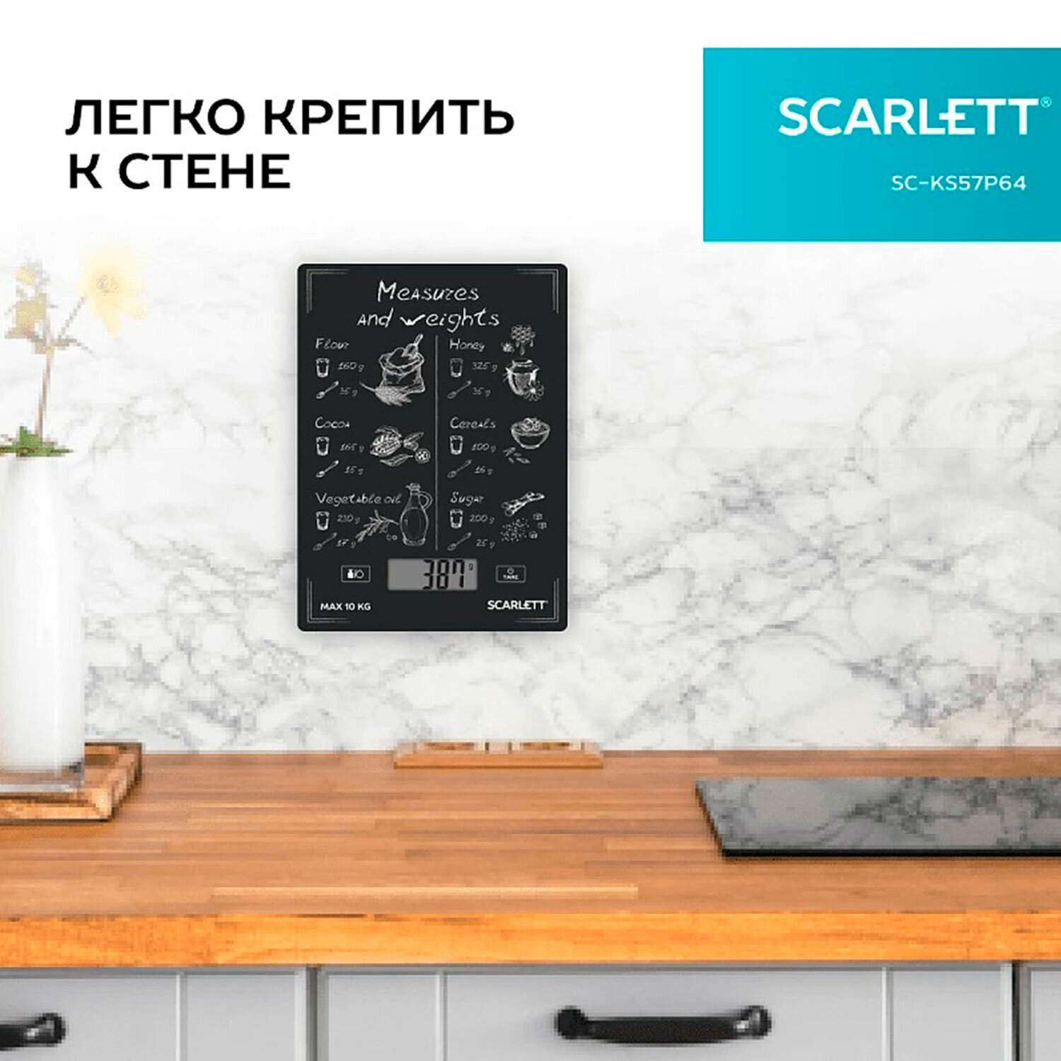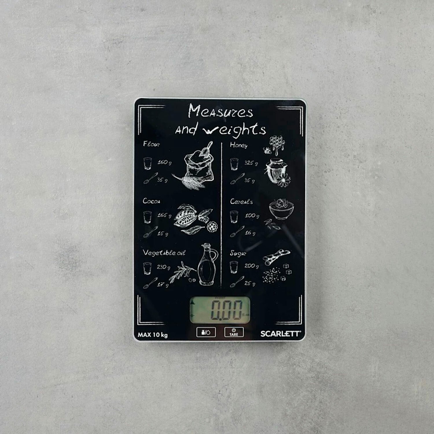 Весы кухонные SCARLETT SC-KS57P64, электронный дисплей, max вес 10 кг, тарокомпенсация, стекло