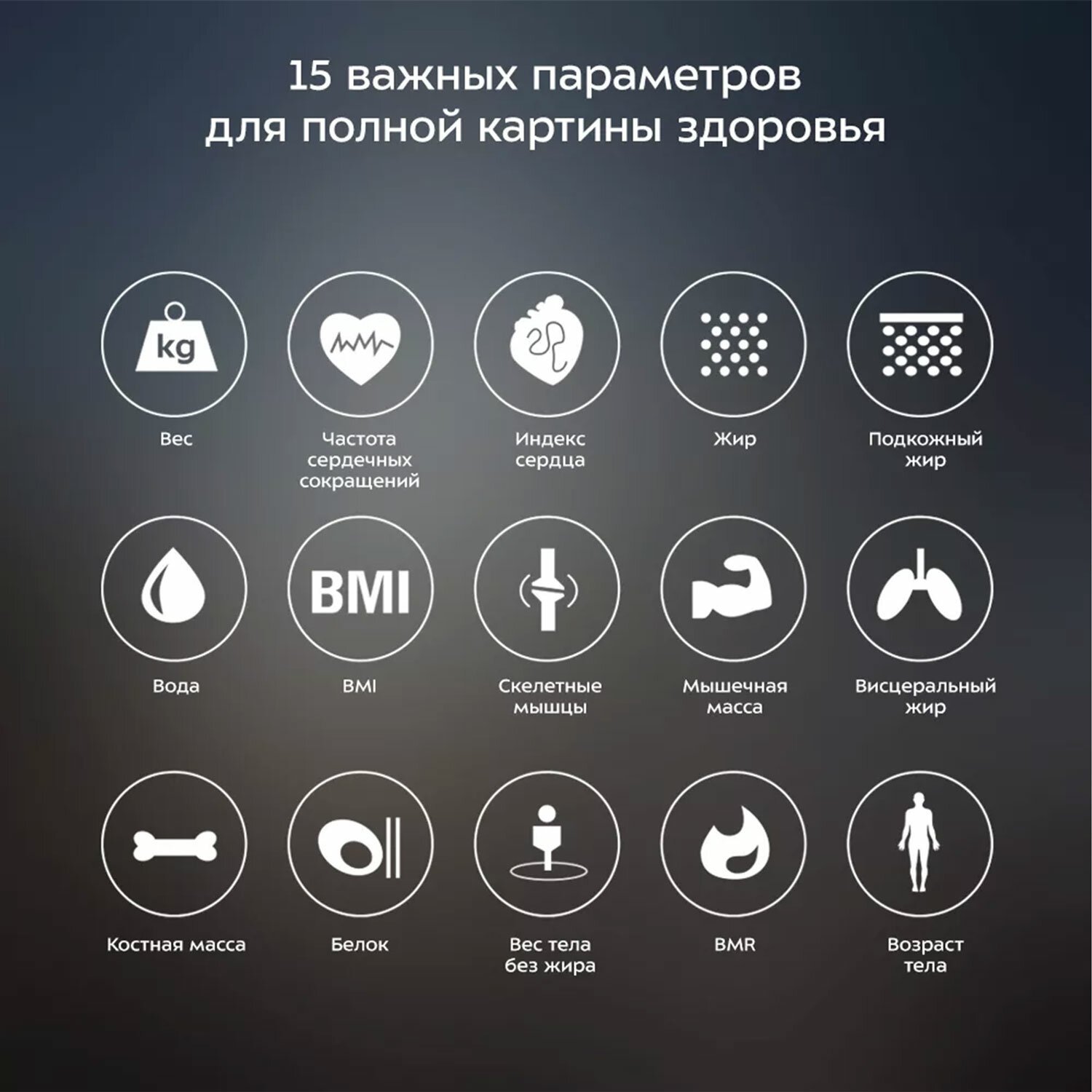 В течение 5 секунд после взвешивания в приложении отразятся важнейшие параметры тела пользователя. Среди них: вес, возраст, содержание воды, белка, жира и костной массы в организме, общий баланс тела и многие другие.