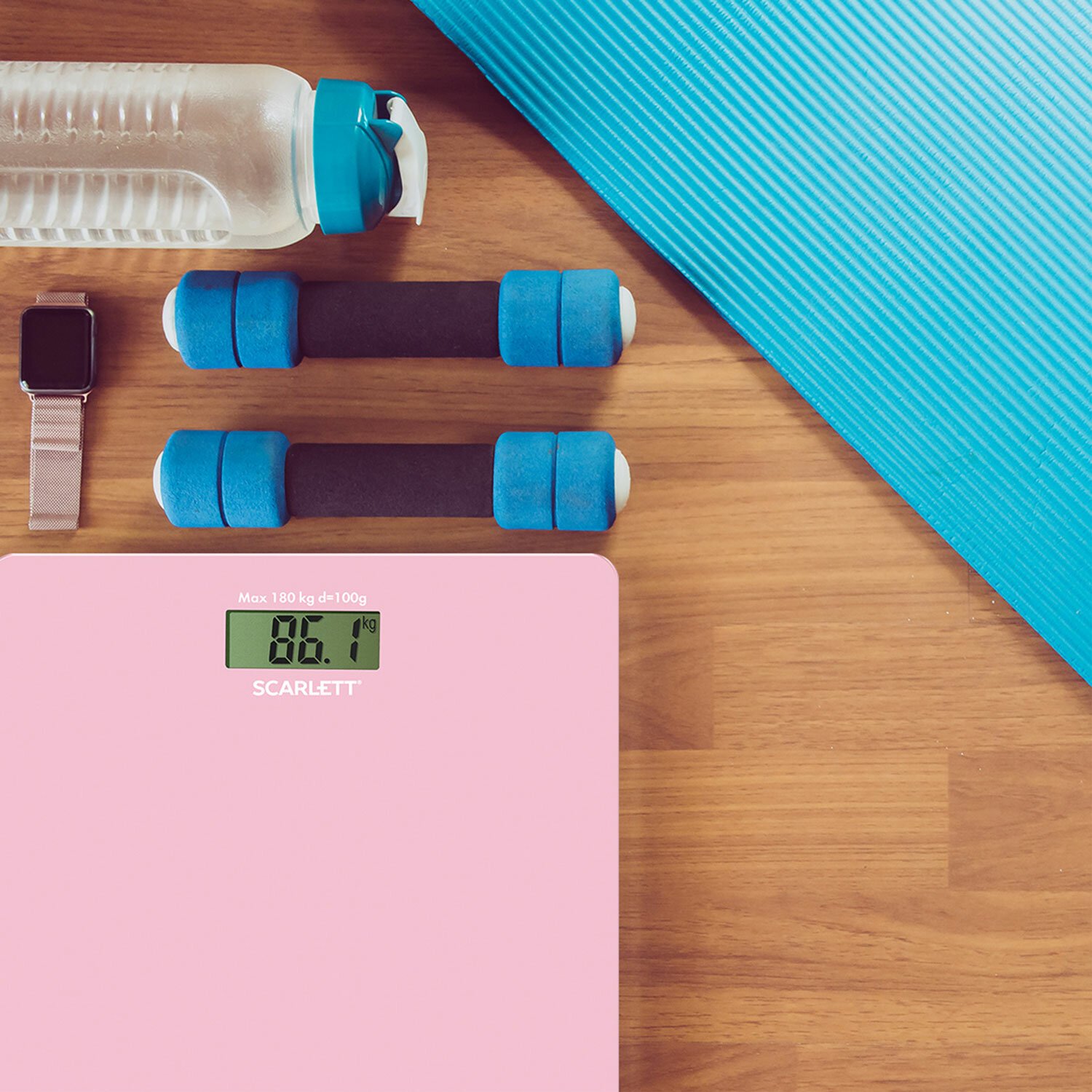 Весы напольные SCARLETT SC-BS33E041, электронные, вес до 180 кг, квадратные, стекло, розовые