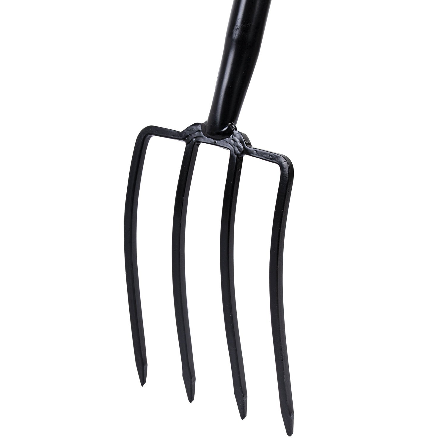 Максимальная надежность обеспечивается рабочим полотном из стали, прошедшей специальную закалку. Инструмент способен выдержать любые нагрузки при длительной работе без потери прочности. Вилы оснащены 4 острыми стальными зубьями, расположенными под оптимальным углом, для эффективной работы с любыми материалами, а также удобной рукояткой универсального размера, позволяющей работать как в перчатках, так и без них.