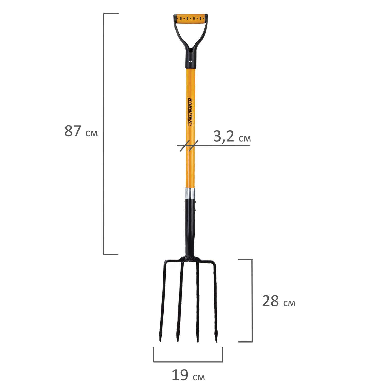 Вилы копальные стальные RABBITEX FIBERGLASS - незаменимый инструмент для вашего сада и огорода. Применяются для вскапывания и рыхления почвы, выкапывания корней и корнеплодов, работы с травой, компостом, сеном, а также для аэрации грунта.