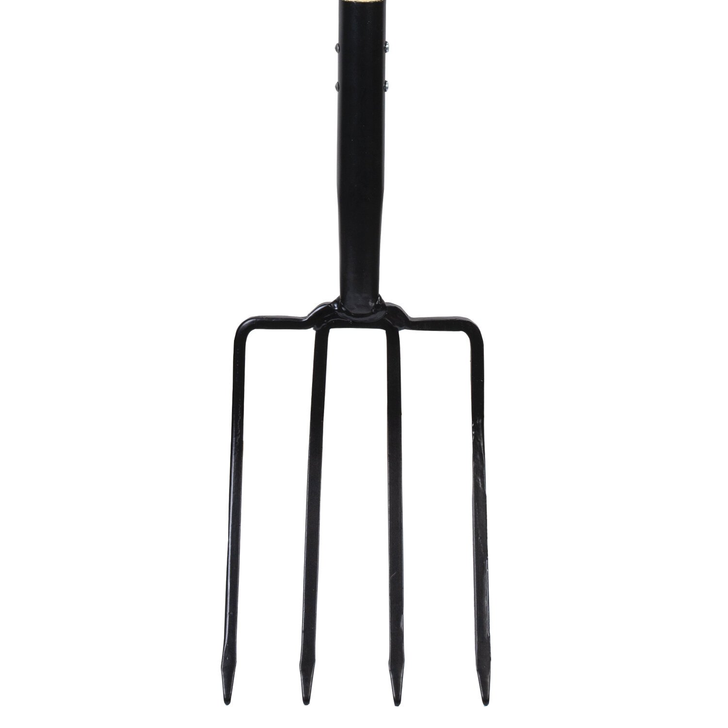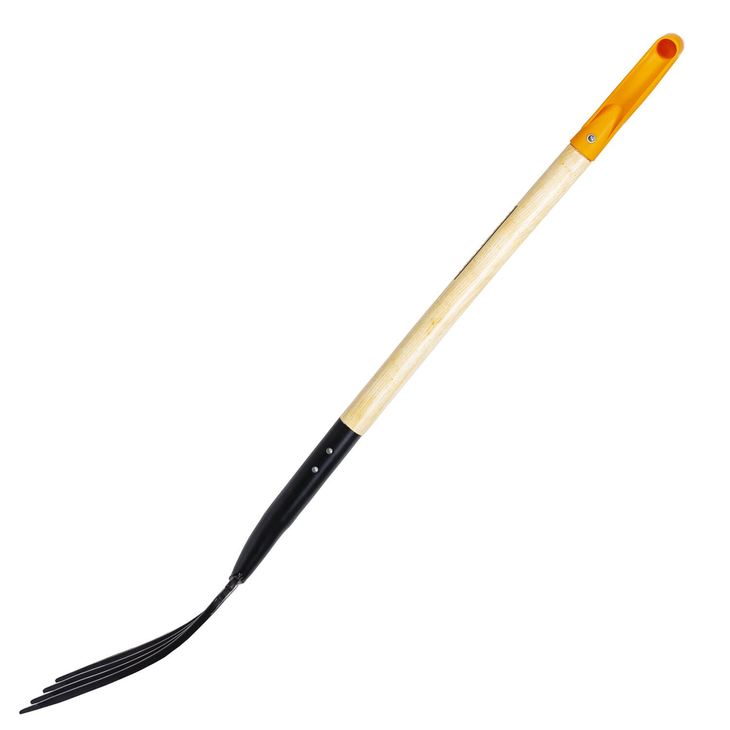 Максимальная надежность обеспечивается рабочим полотном из стали, прошедшей специальную закалку. Инструмент способен выдержать любые нагрузки при длительной работе без потери прочности. Вилы оснащены 4 острыми стальными зубьями, расположенными под оптимальным углом, для эффективной работы с любыми материалами, а также удобной рукояткой универсального размера, позволяющей работать как в перчатках, так и без них.