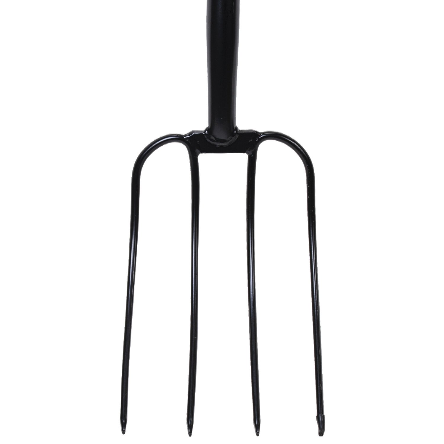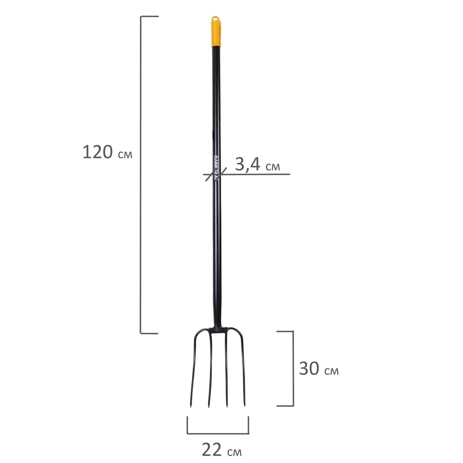 Максимальная надежность обеспечивается цельной конструкцией из стали, прошедшей специальную закалку. Инструмент способен выдержать любые нагрузки при длительной работе без потери прочности. Вилы оснащены 4 острыми стальными зубьями, расположенными под оптимальным углом для эффективной работы с любыми материалами.