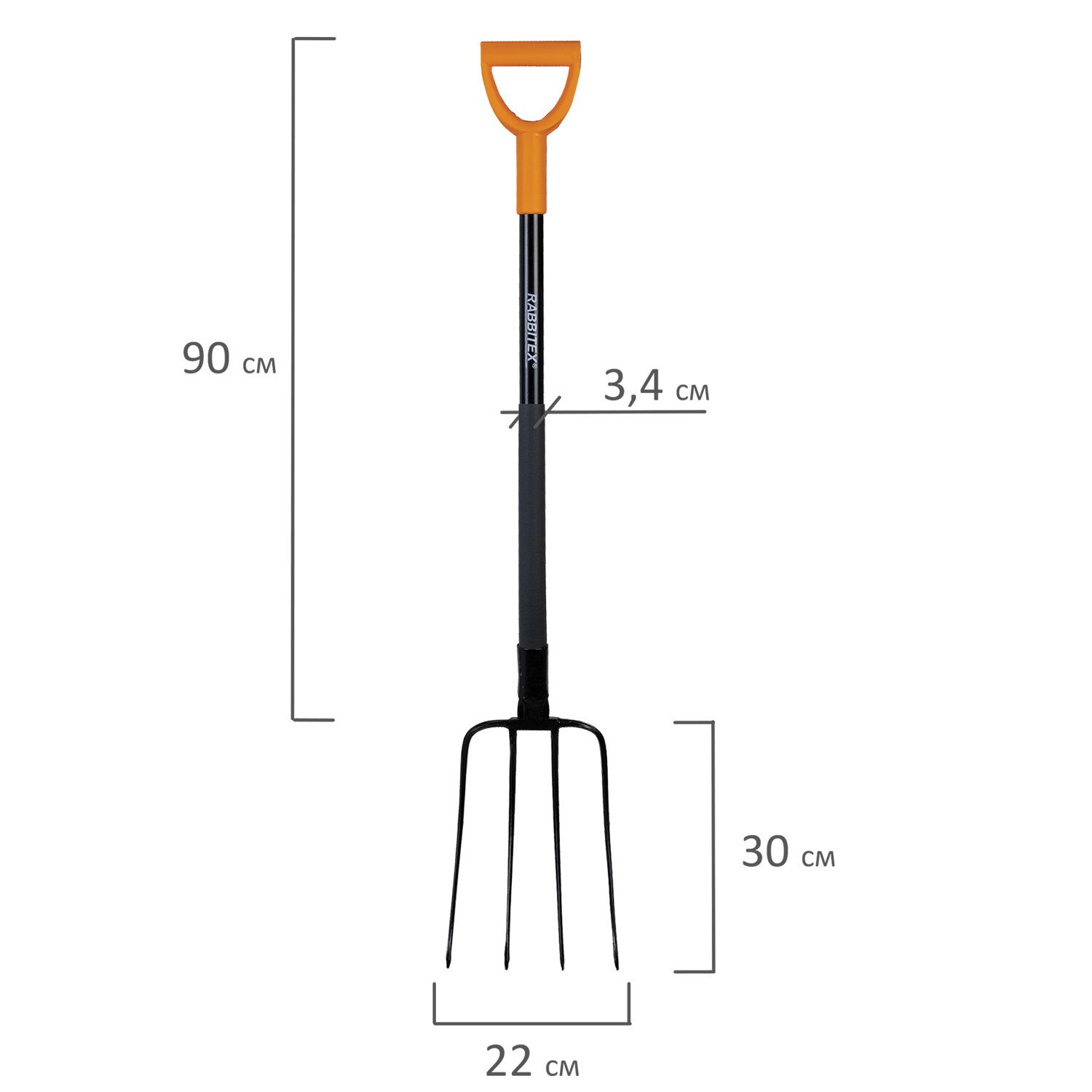 Вилы садовые цельнометаллические 22х30см, L=150см, черенок сталь, RABBITEX "long hand, 700489
