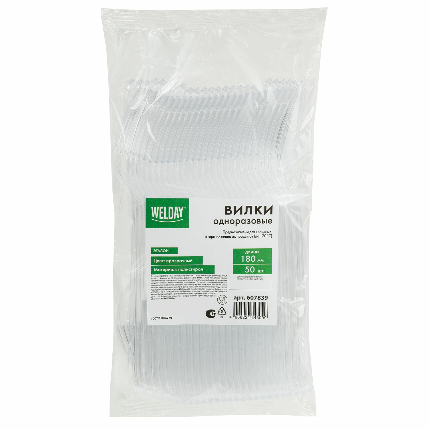 Вилка одноразовая пластиковая 180 мм, прозрачная, КОМПЛЕКТ 50 шт., ЭТАЛОН, WELDAY, 607839