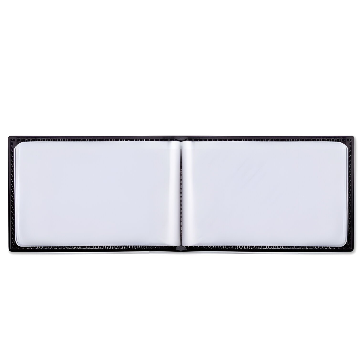 Мягкая обложка из кожзама с текстурой под гладкую кожу прошита по периметру. Подходит для тиснения фольгой и горячего тиснения. Содержит 10 карманов из мягкого ПВХ на 20 визитных карточек или 10 кредитных и дисконтных карт. Размер изделия – 110х70 мм.