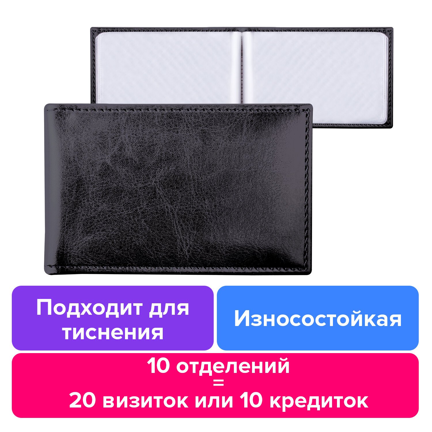 Визитница однорядная BRAUBERG "Imperial", на 20 визиток, под гладкую кожу, черная, 232291