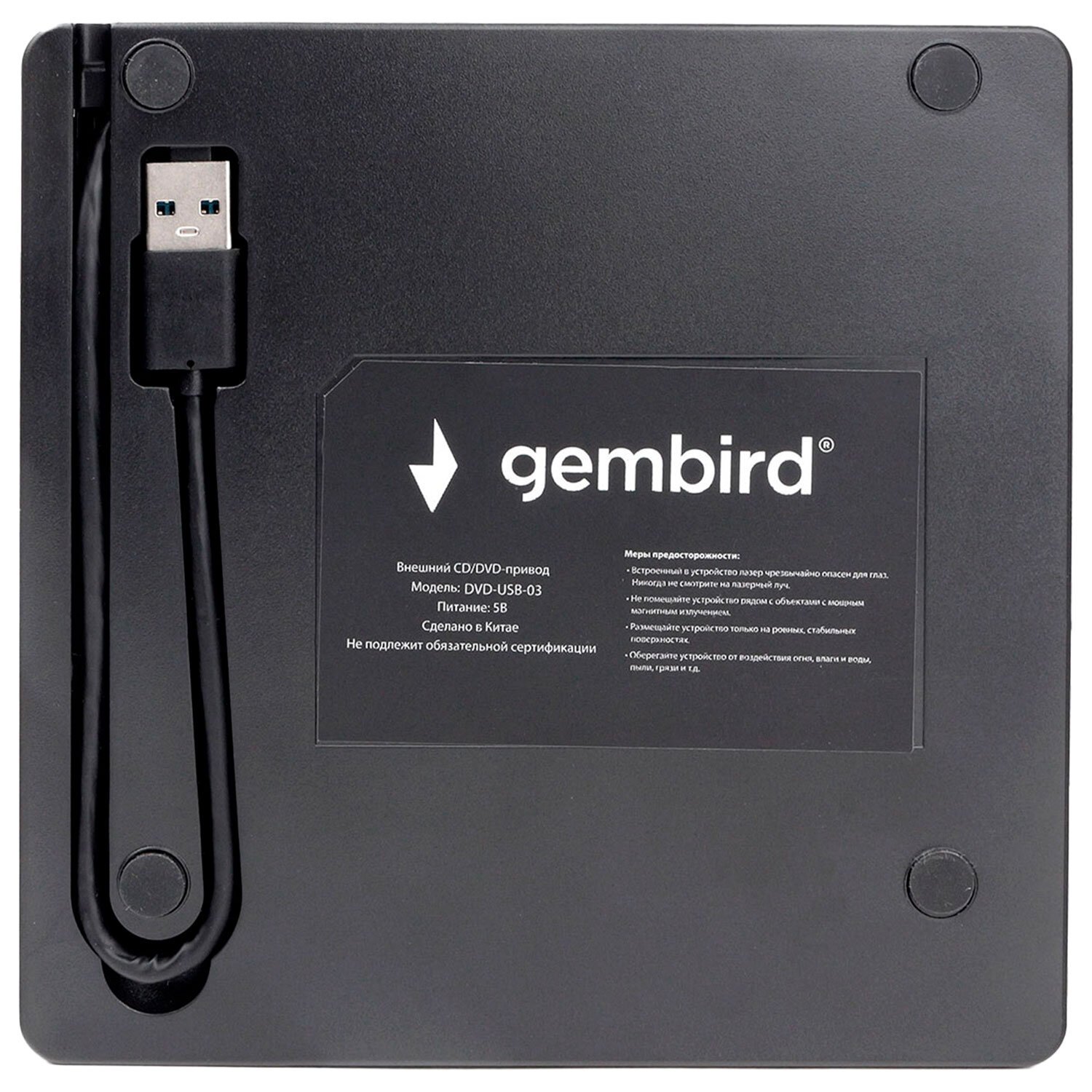 Внешний оптический привод CD/DVD GEMBIRD USB 3.0, пластик, черный, DVD-USB-03