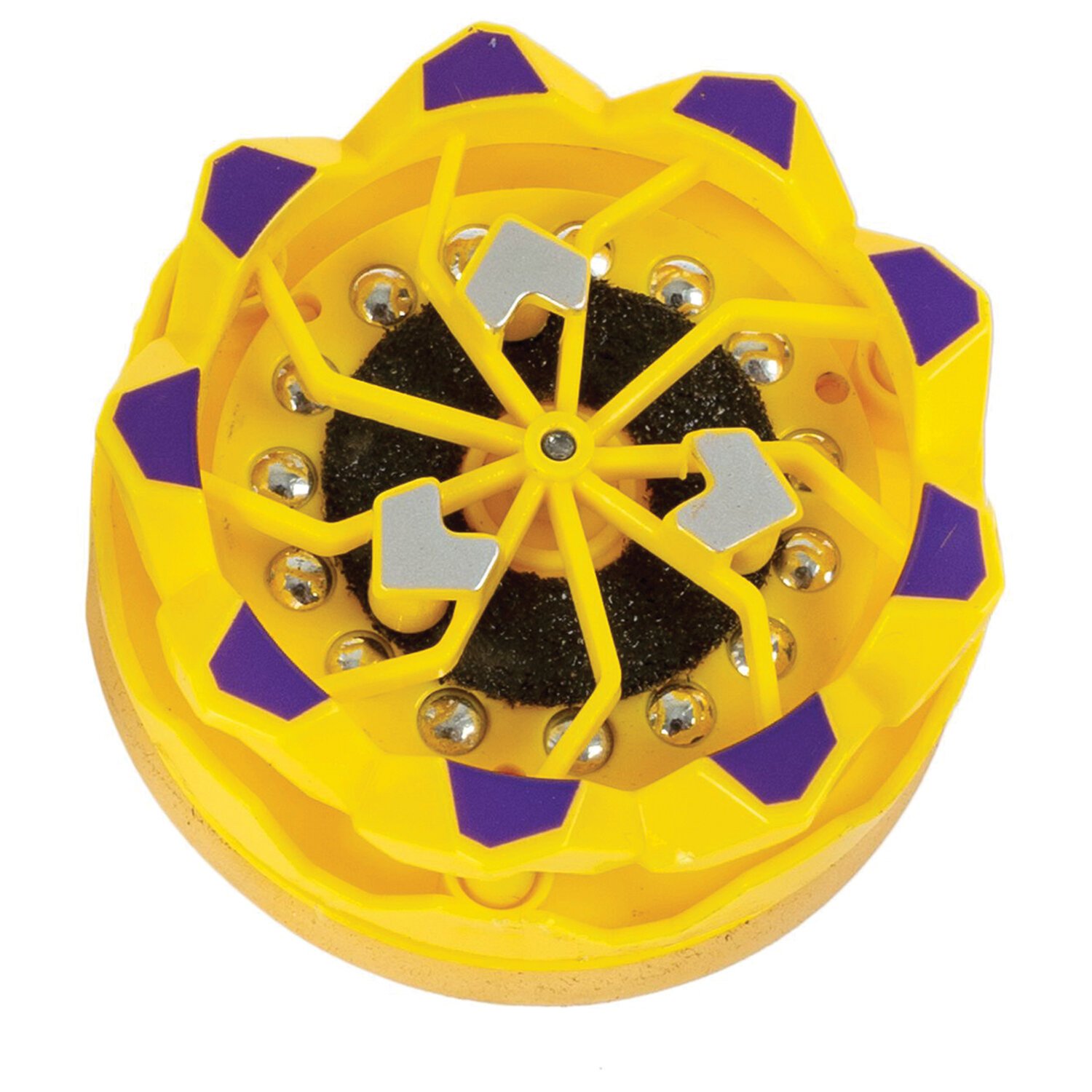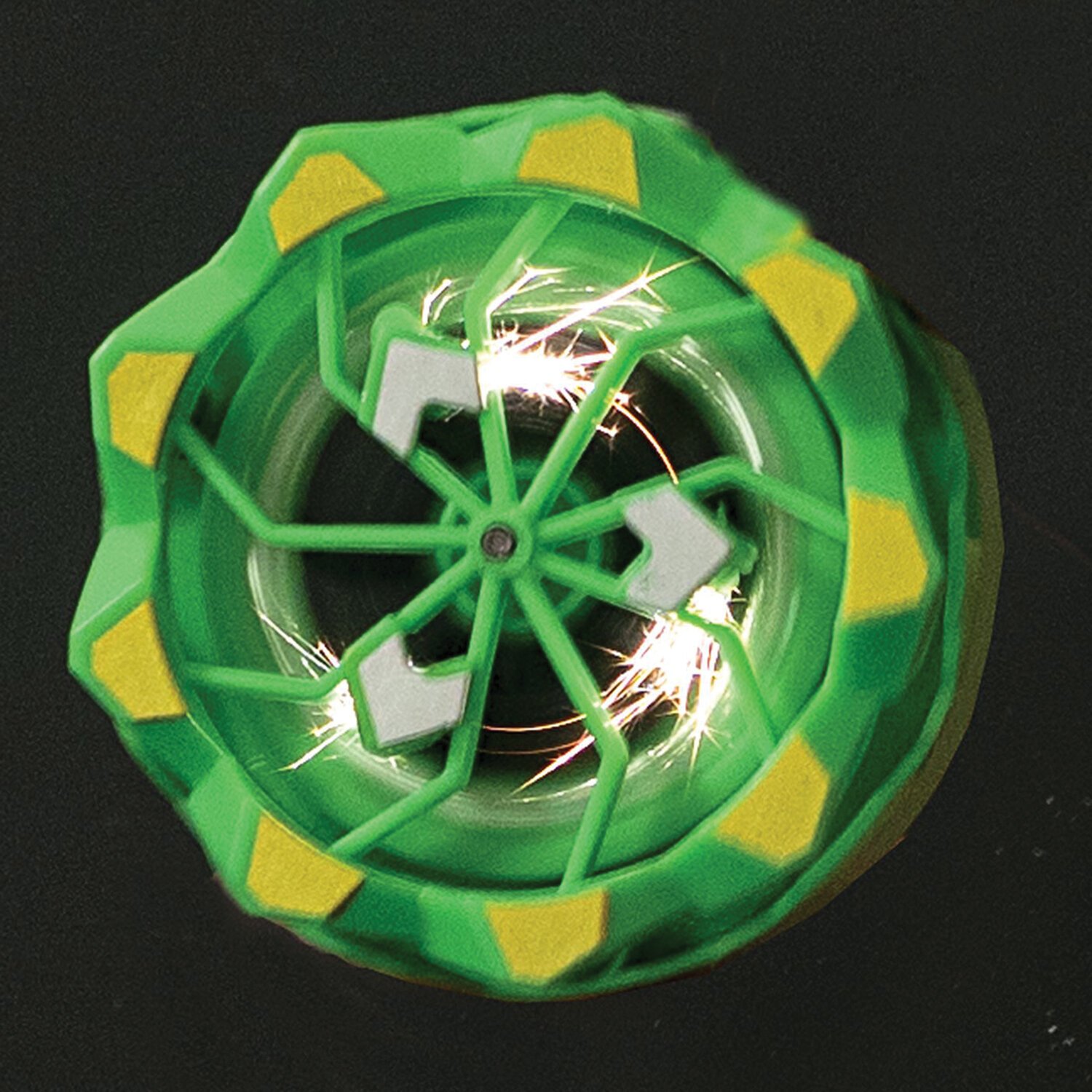 Секрет волшебства кроется в особом механизме запуска: закрутите обод о поверхность и отпустите волчок. Трение о поверхность под углом 35 градусов приводит юлу в движение, в этот момент из нее начинают лететь безопасные, завораживающие искры.
