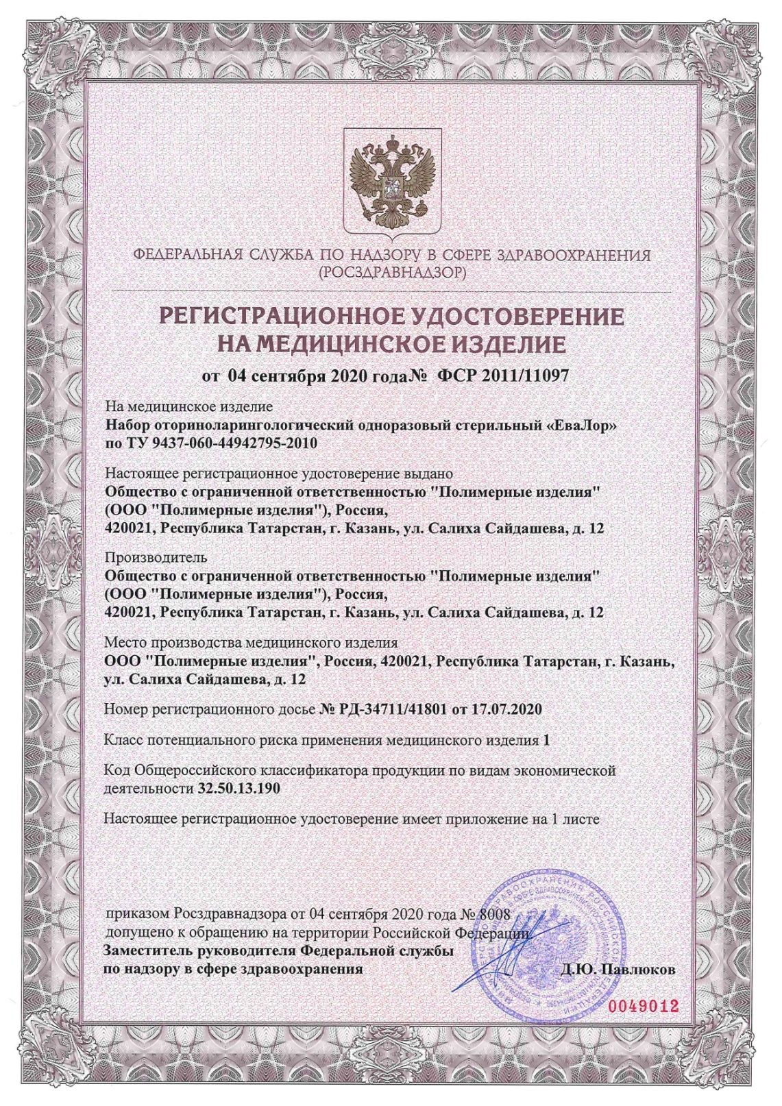 Набор оториноларингологический одноразовый стерильный "ЕваЛор 2" (3 предмета), КПИ