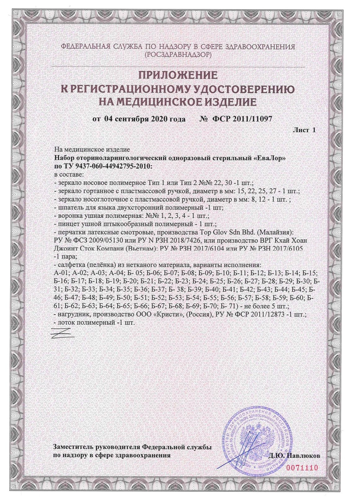 Набор оториноларингологический одноразовый стерильный "ЕваЛор 1" (8 предметов), КПИ