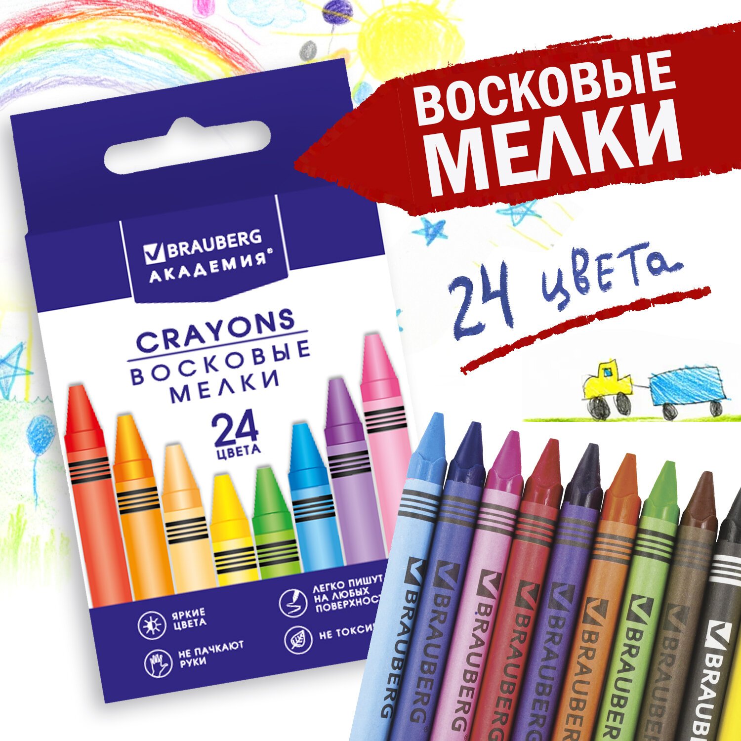 Восковые мелки BRAUBERG "АКАДЕМИЯ", НАБОР 24 цвета, 227285
