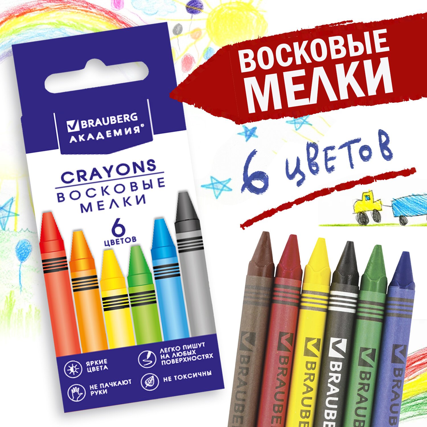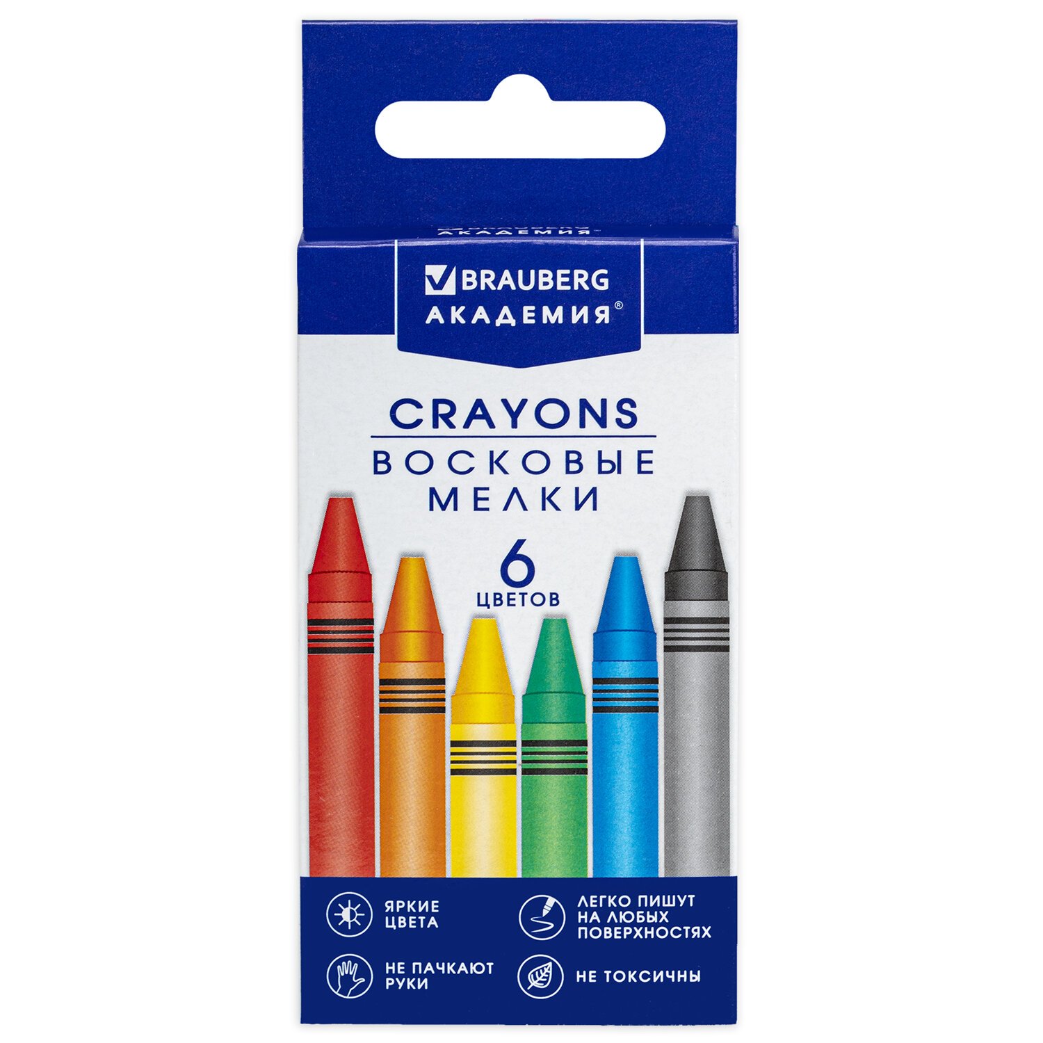 Восковые мелки BRAUBERG "АКАДЕМИЯ", НАБОР 6 цветов, 227282