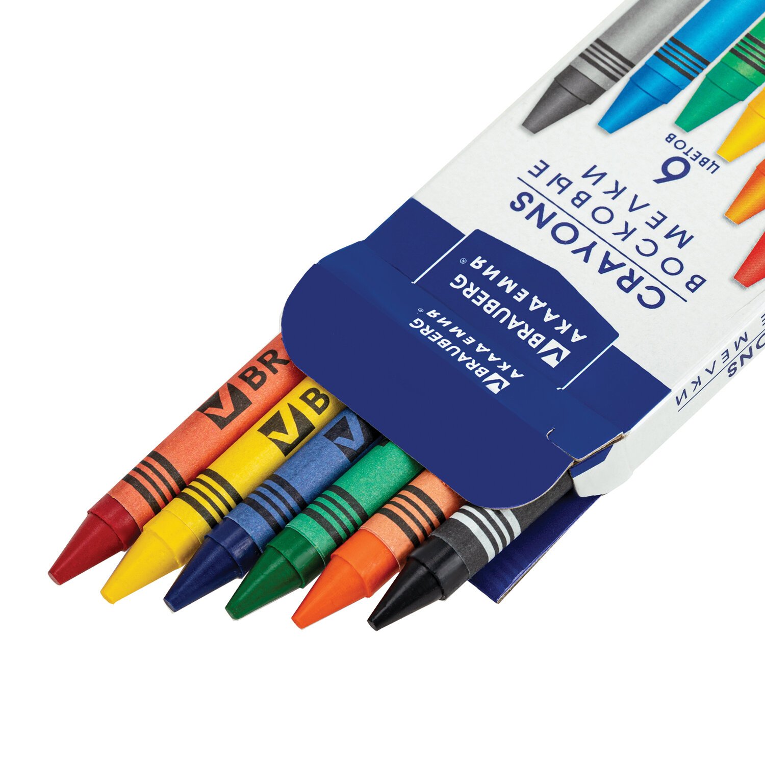 Восковые мелки BRAUBERG, НАБОР 6 цветов, 222961