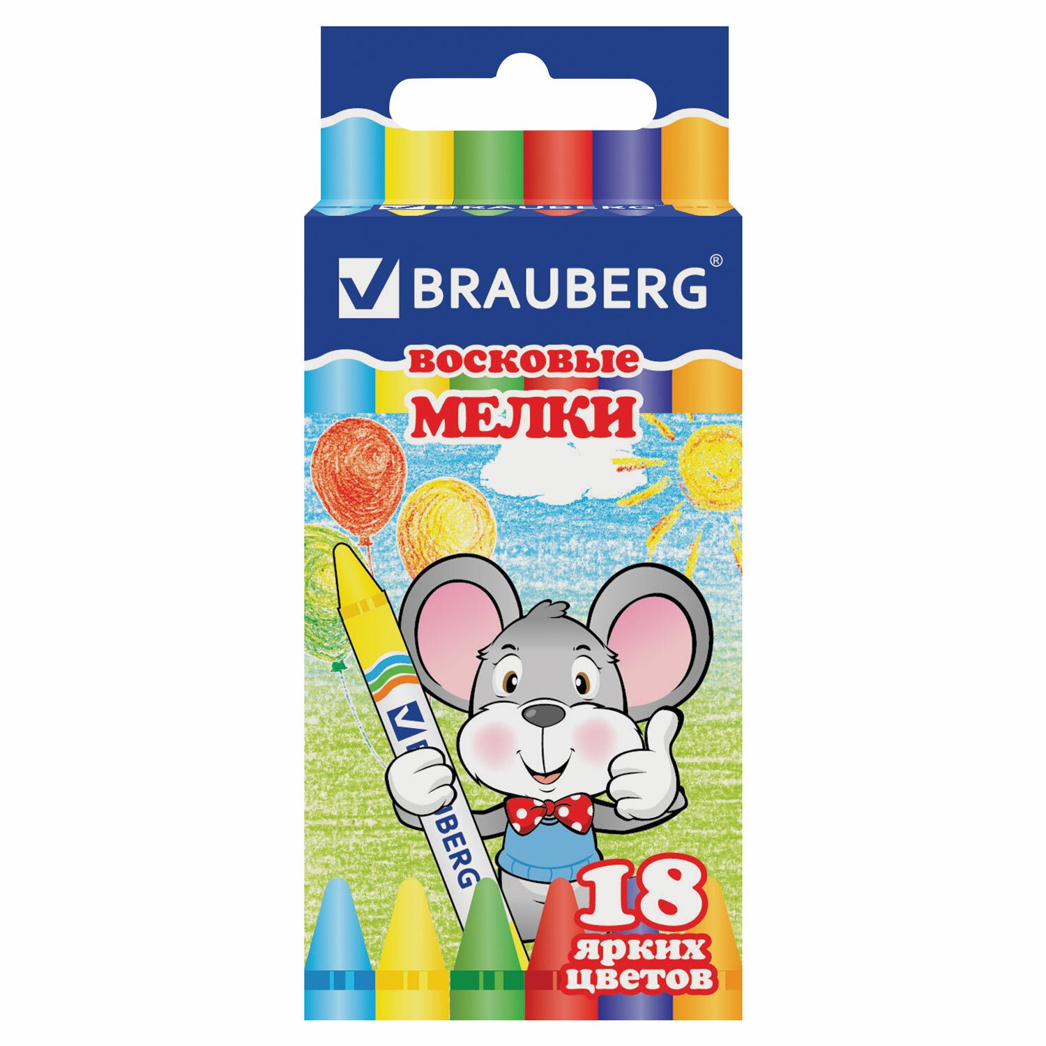 Восковые мелки BRAUBERG, НАБОР 18 цветов, 222963