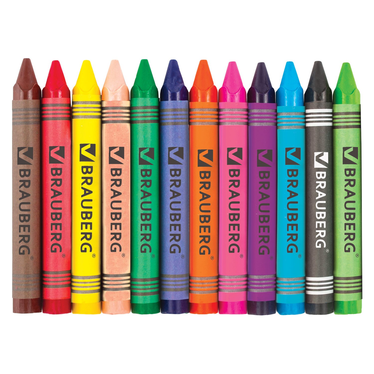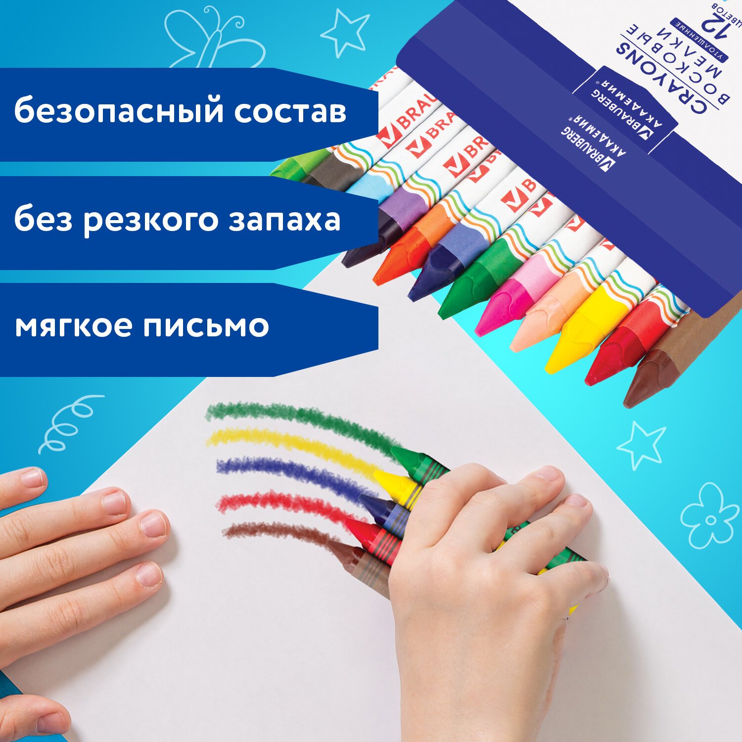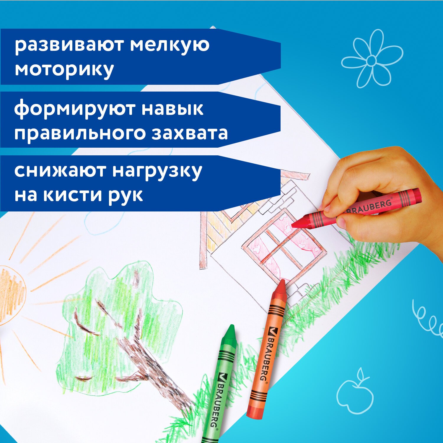 Восковые мелки трехгранные утолщенные BRAUBERG KIDS, НАБОР 12 цветов, 271695
