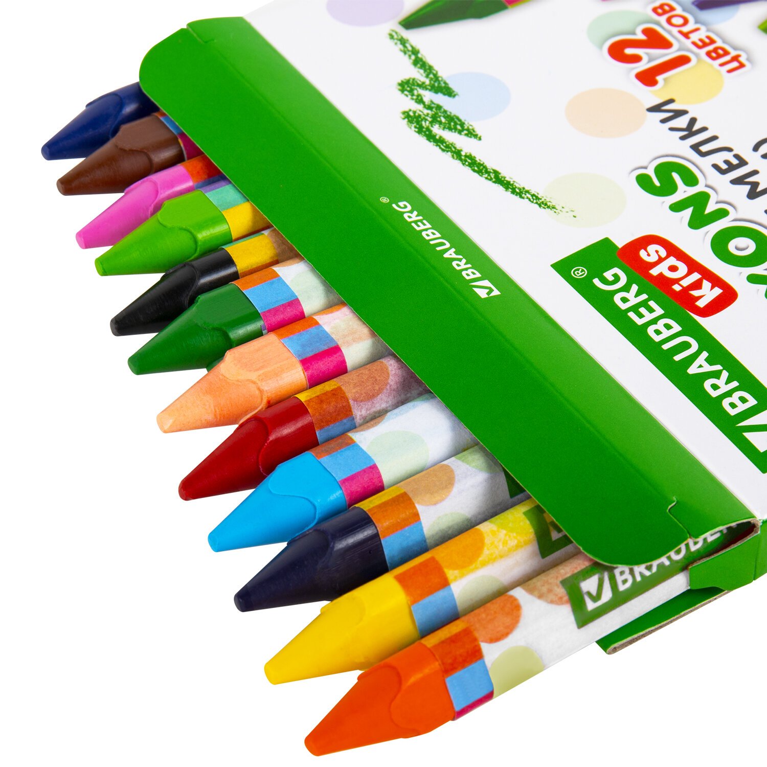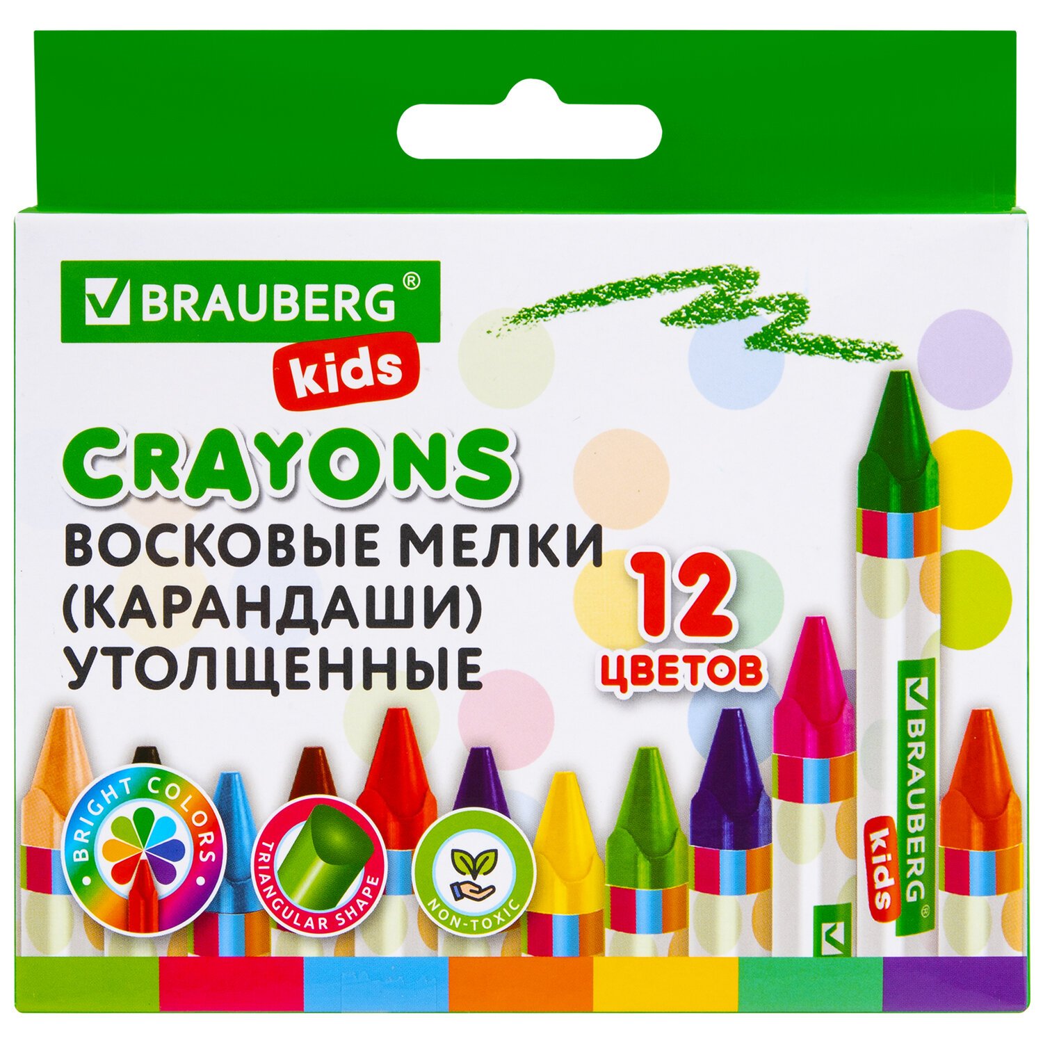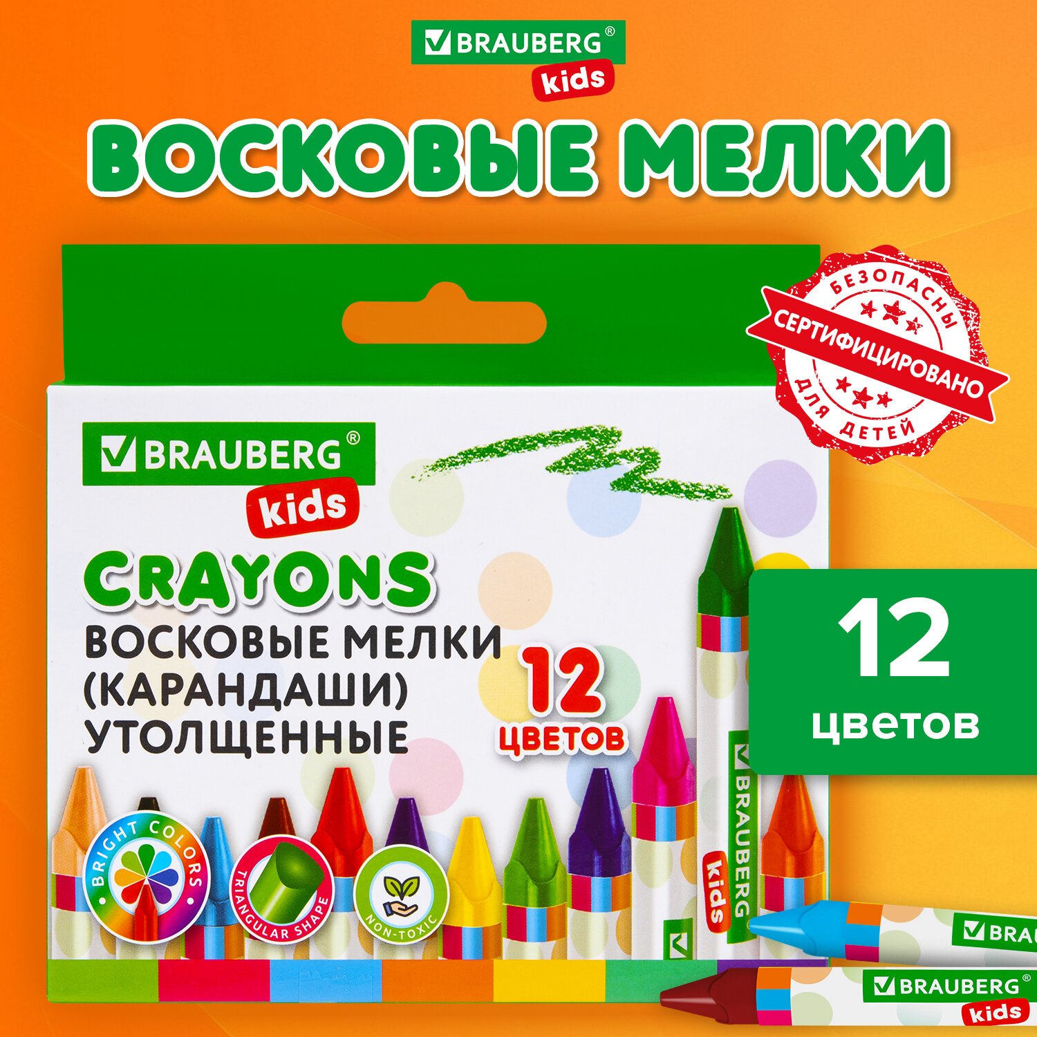 Восковые мелки трехгранные утолщенные BRAUBERG KIDS, НАБОР 12 цветов, 271695
