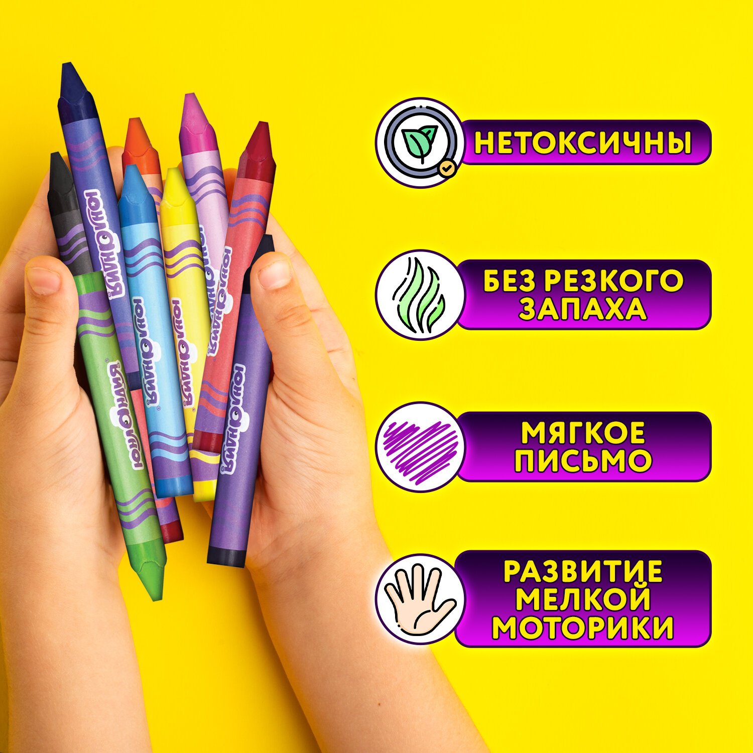 Восковые мелки ЮНЛАНДИЯ идеальны для создания первых "шедевров" во время рисования и раскрашивания. Можно использовать на бумаге любого типа, а также дереве, картоне и стекле.