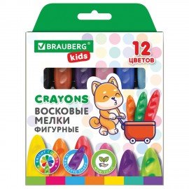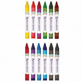 Восковые мелки утолщенные BRAUBERG, НАБОР 12 цветов, 222966