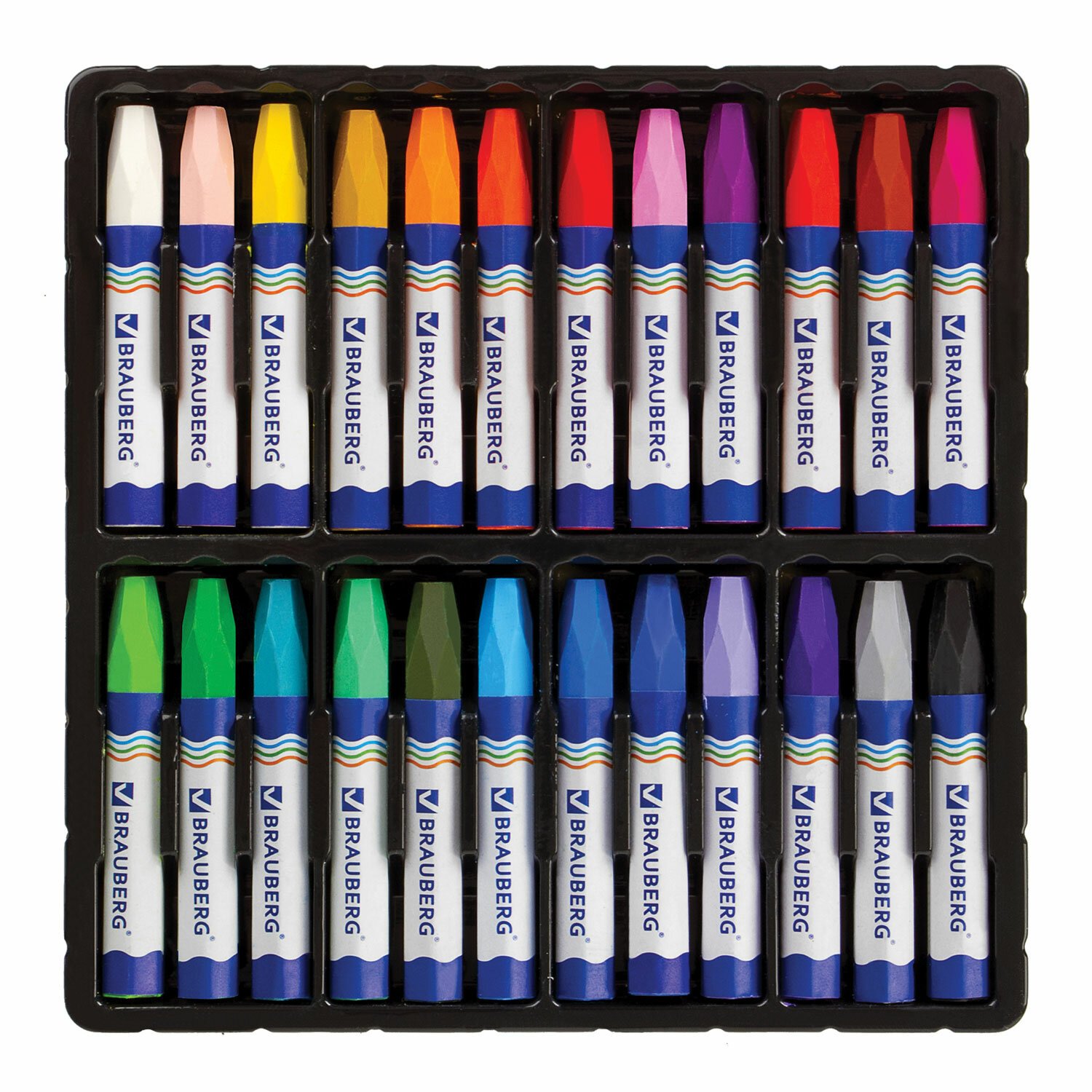Восковые мелки утолщенные BRAUBERG, НАБОР 24 цвета, на масляной основе, яркие цвета, 222972