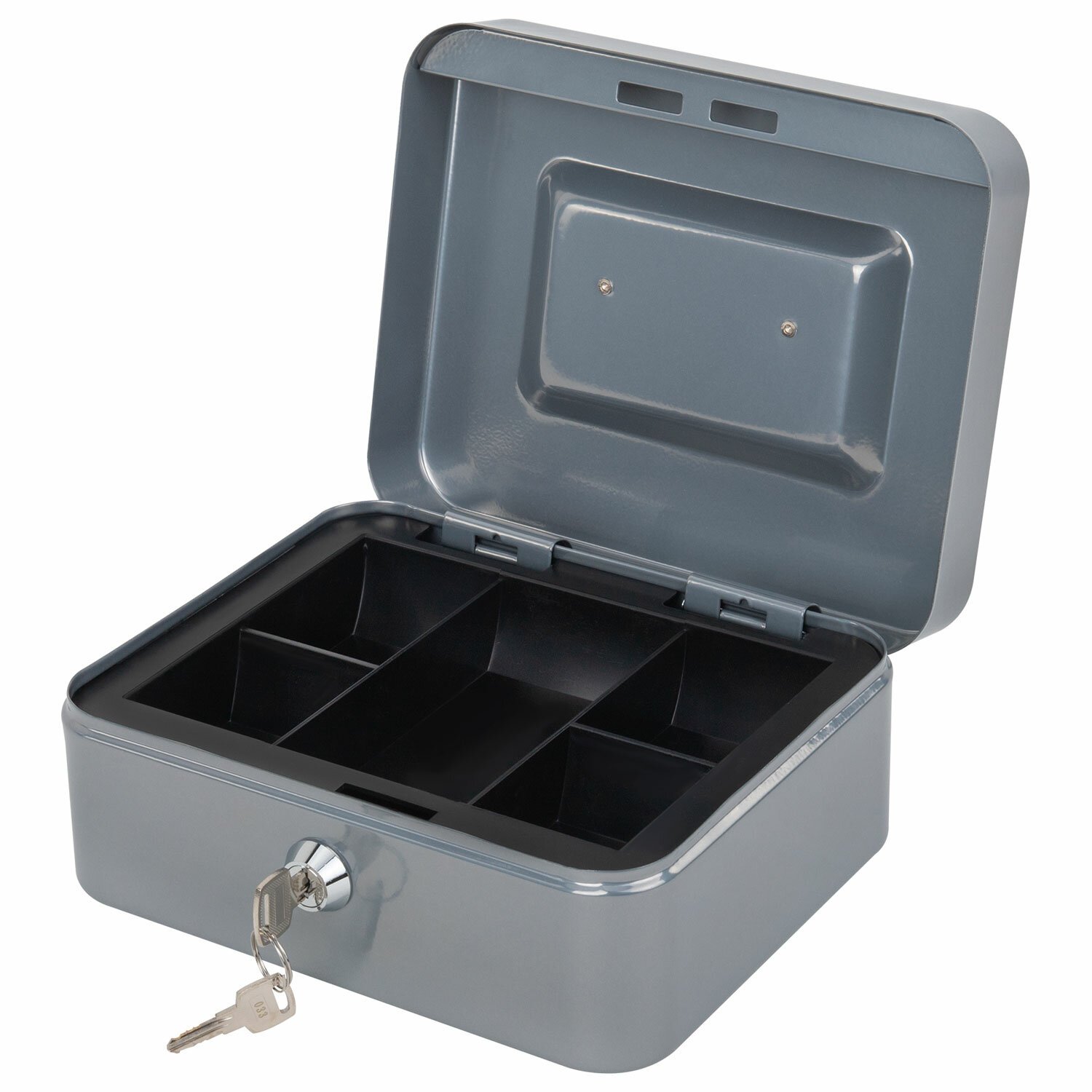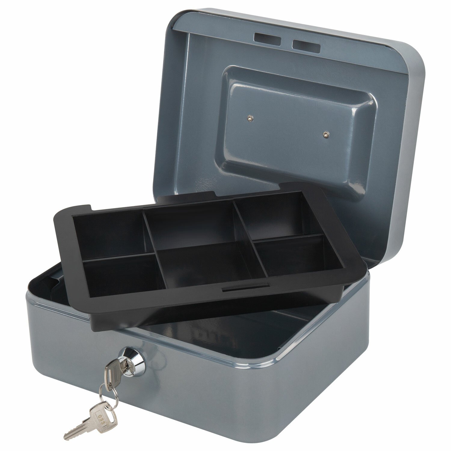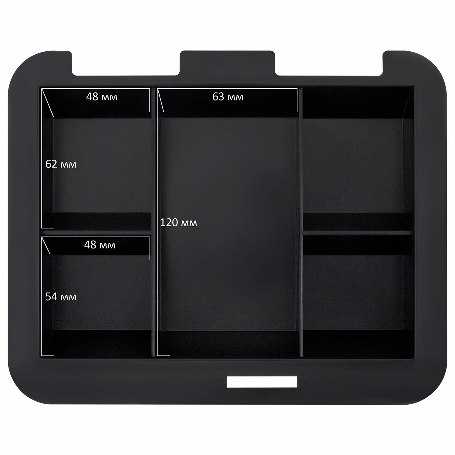 Съемный лоток из ударопрочного пластика с 5 отделениями. Подходит для денег, карточек, ключей, печатей. Под лотком есть пространство, где можно хранить документы и бумаги.