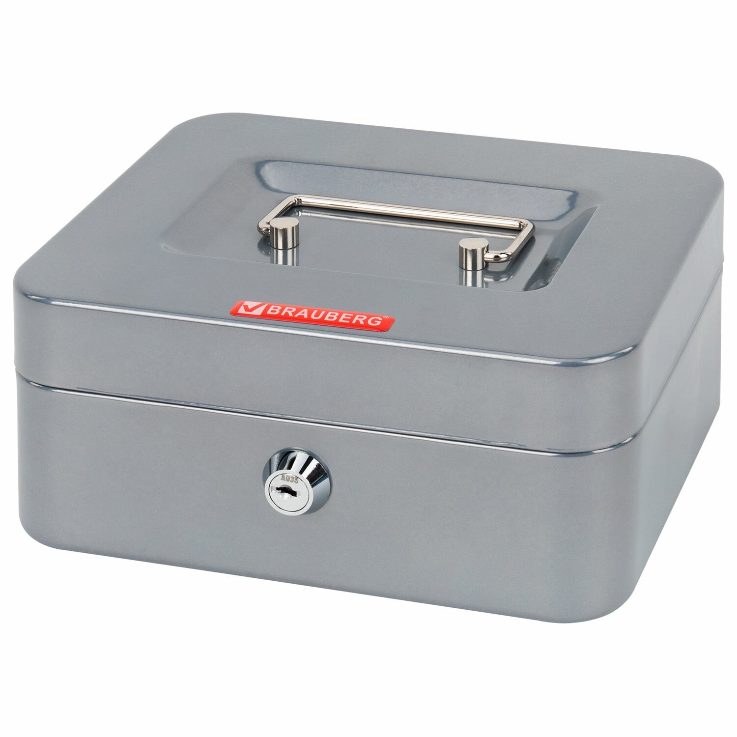 Ящик для денег, ценностей, документов, печатей, 90х180х250 мм, ключевой замок, серебристый, BRAUBERG, 291059