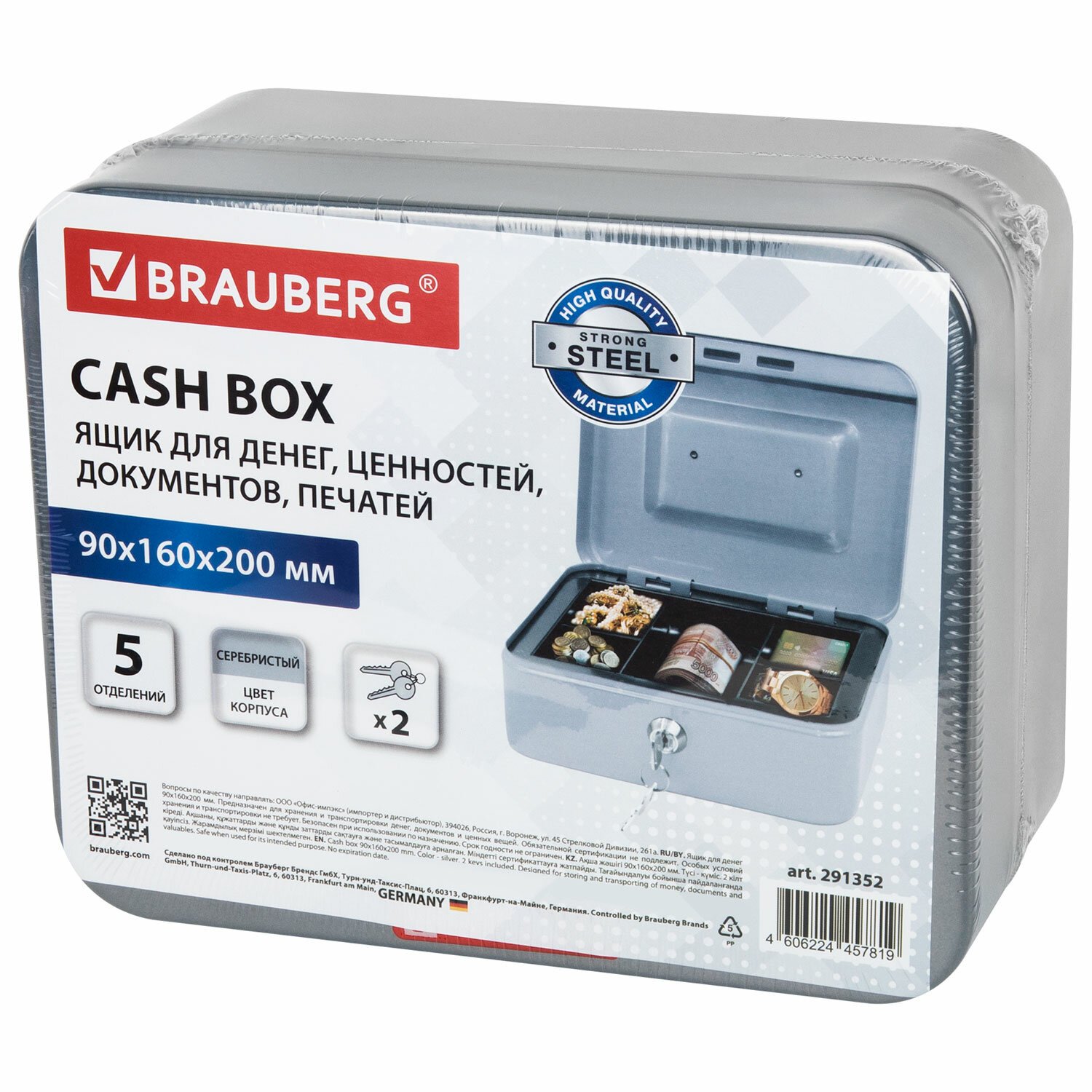 Ящик BRAUBERG предназначен для хранения и транспортировки денег, ценных вещей, документов, печатей, медикаментов. Используется дома и в офисе для ограничения доступа посторонних лиц. Отличное сочетание надёжности и вместительности.