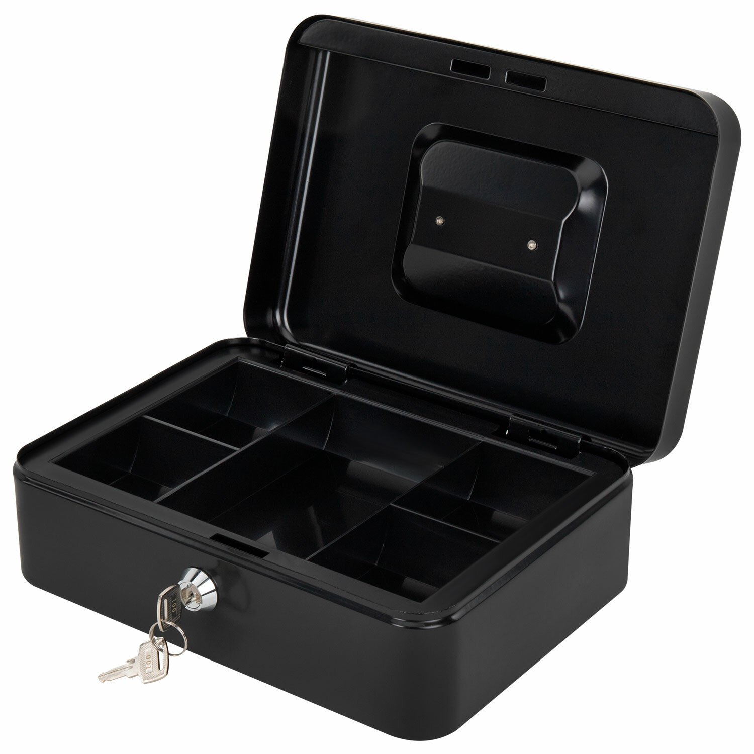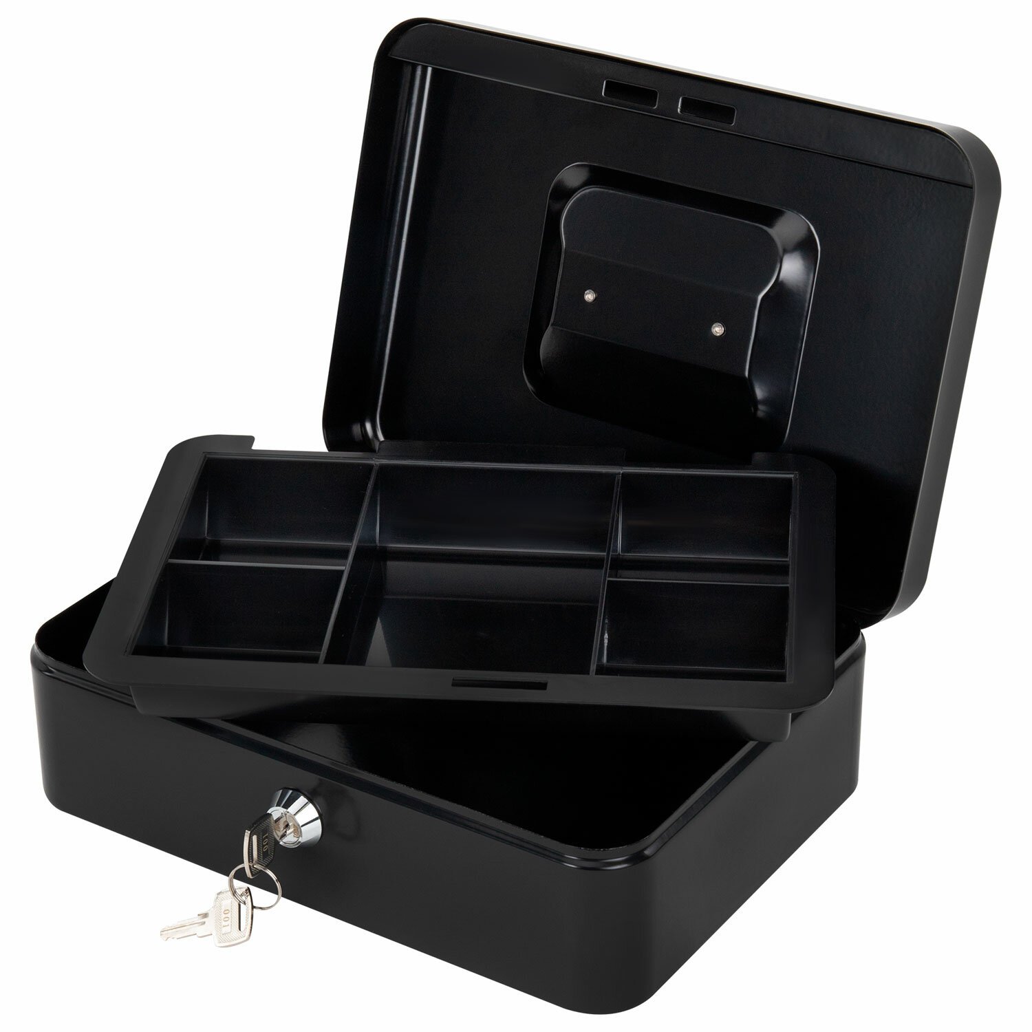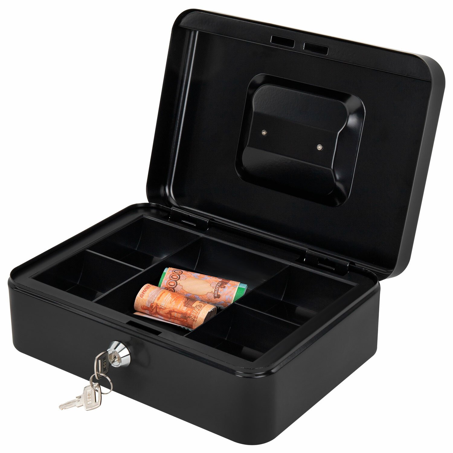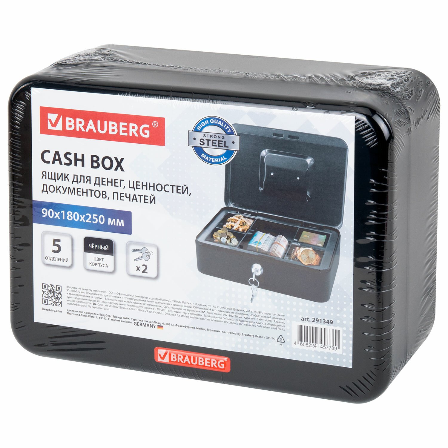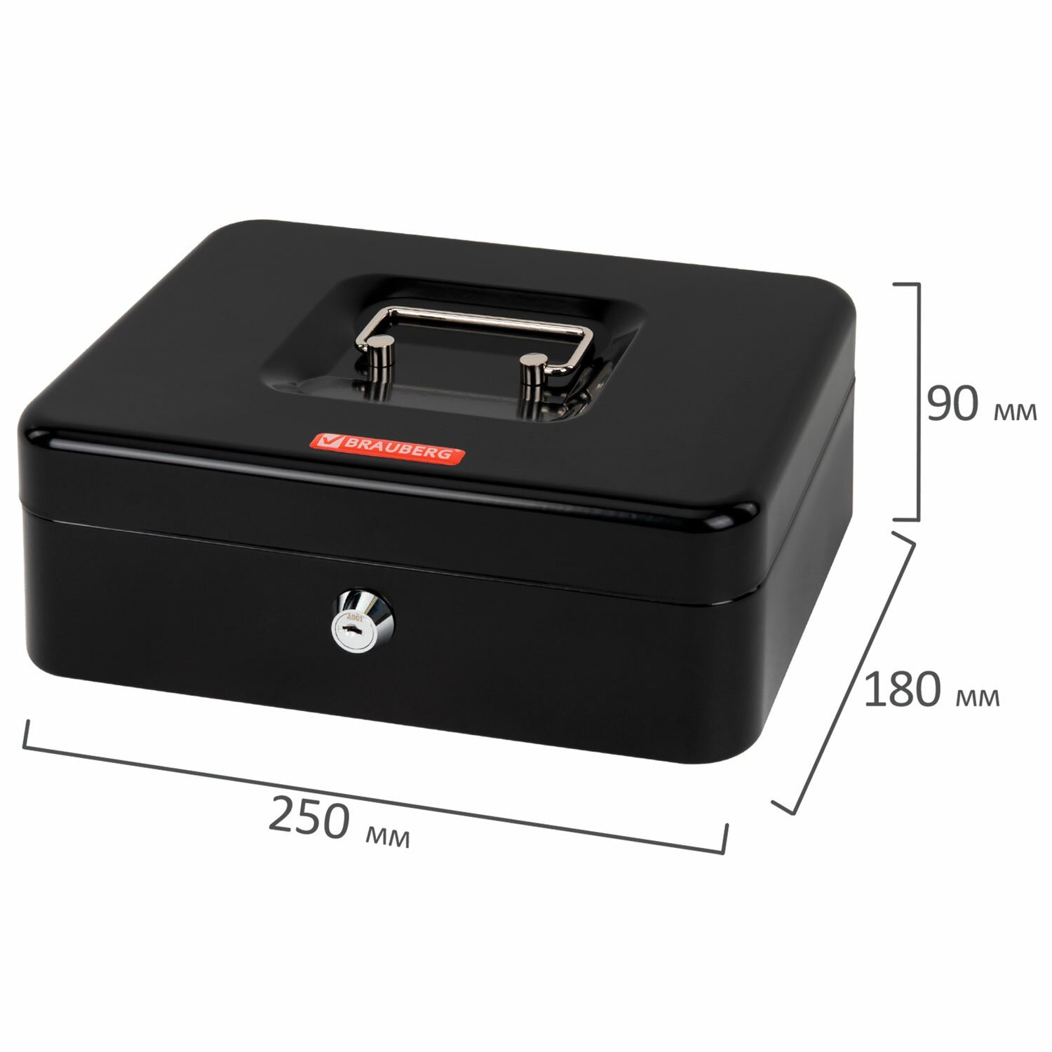 Ящик для денег, ценностей, документов, печатей, 90х180х250 мм, ключевой замок, черный, BRAUBERG, 291349