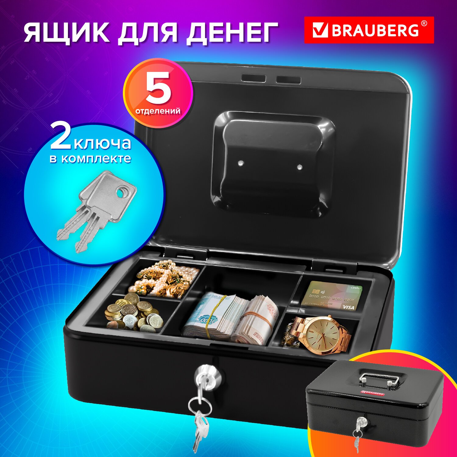 Ящик BRAUBERG предназначен для хранения и транспортировки денег, ценных вещей, документов, печатей, медикаментов. Используется дома и в офисе для ограничения доступа посторонних лиц. Отличное сочетание надёжности и вместительности.