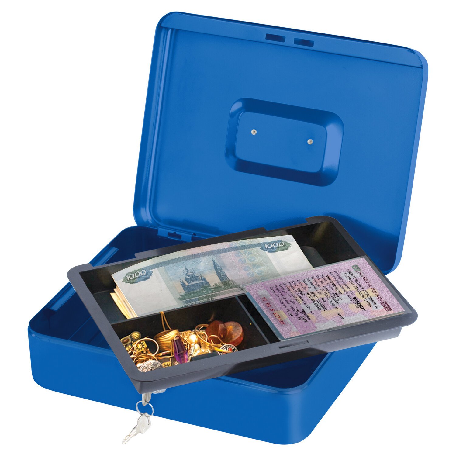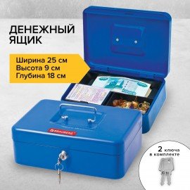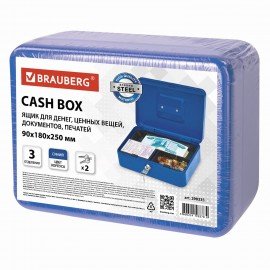 Ящик для денег, ценностей, документов, печатей, 90х180х250 мм, ключевой замок, синий, BRAUBERG, 290335