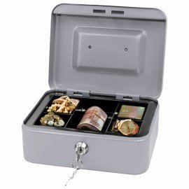 Ящик для денег, ценностей, документов, печатей, 90х180х250 мм, ключевой замок, серебристый, BRAUBERG, 291059