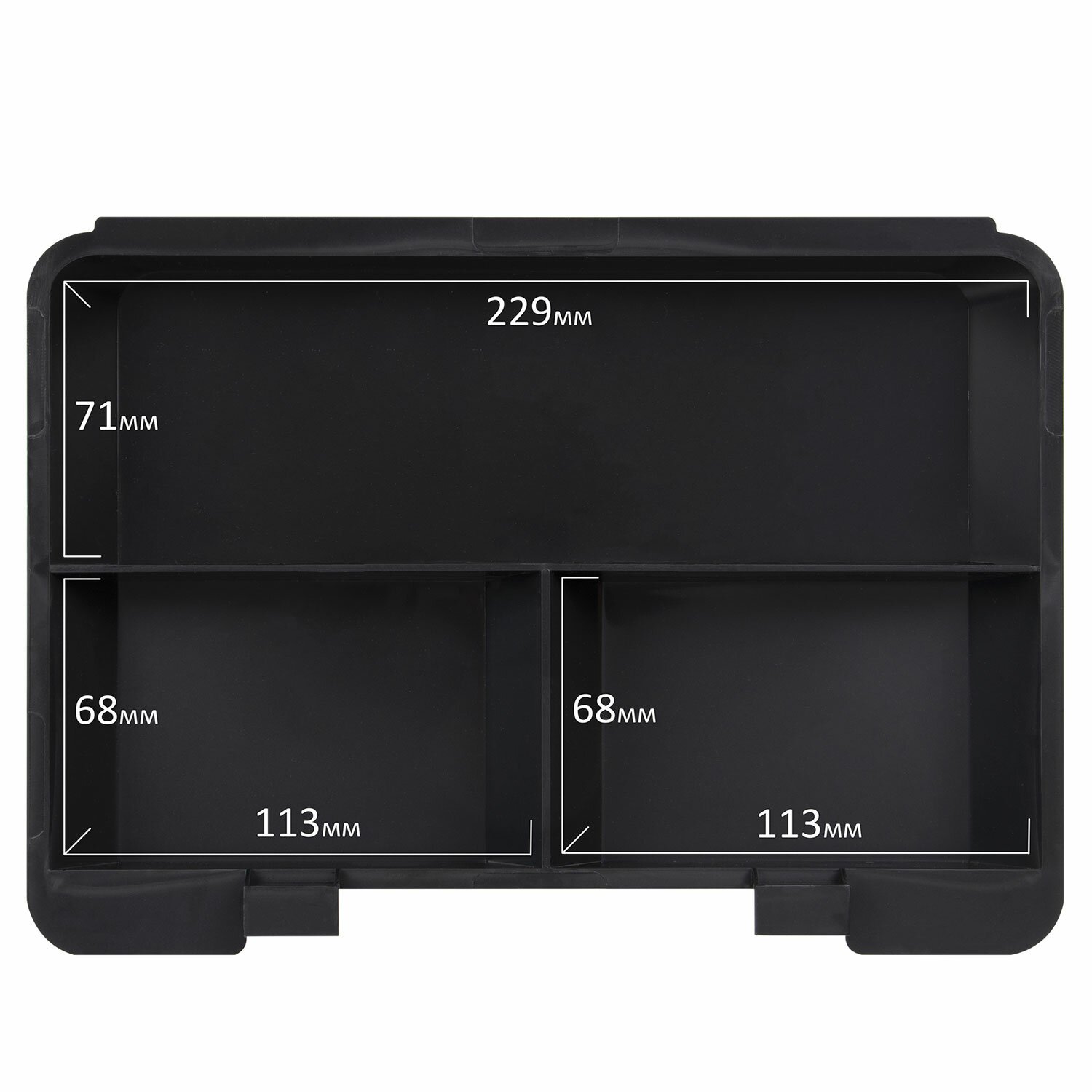 Съемный лоток из ударопрочного пластика с 3 отделениями. Подходит для денег, карточек, ключей, печатей. Под лотком есть пространство, где можно хранить документы и бумаги.