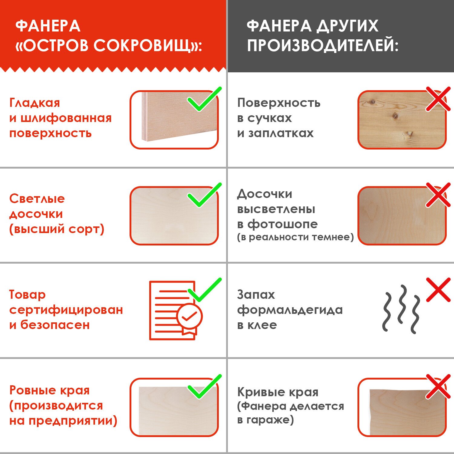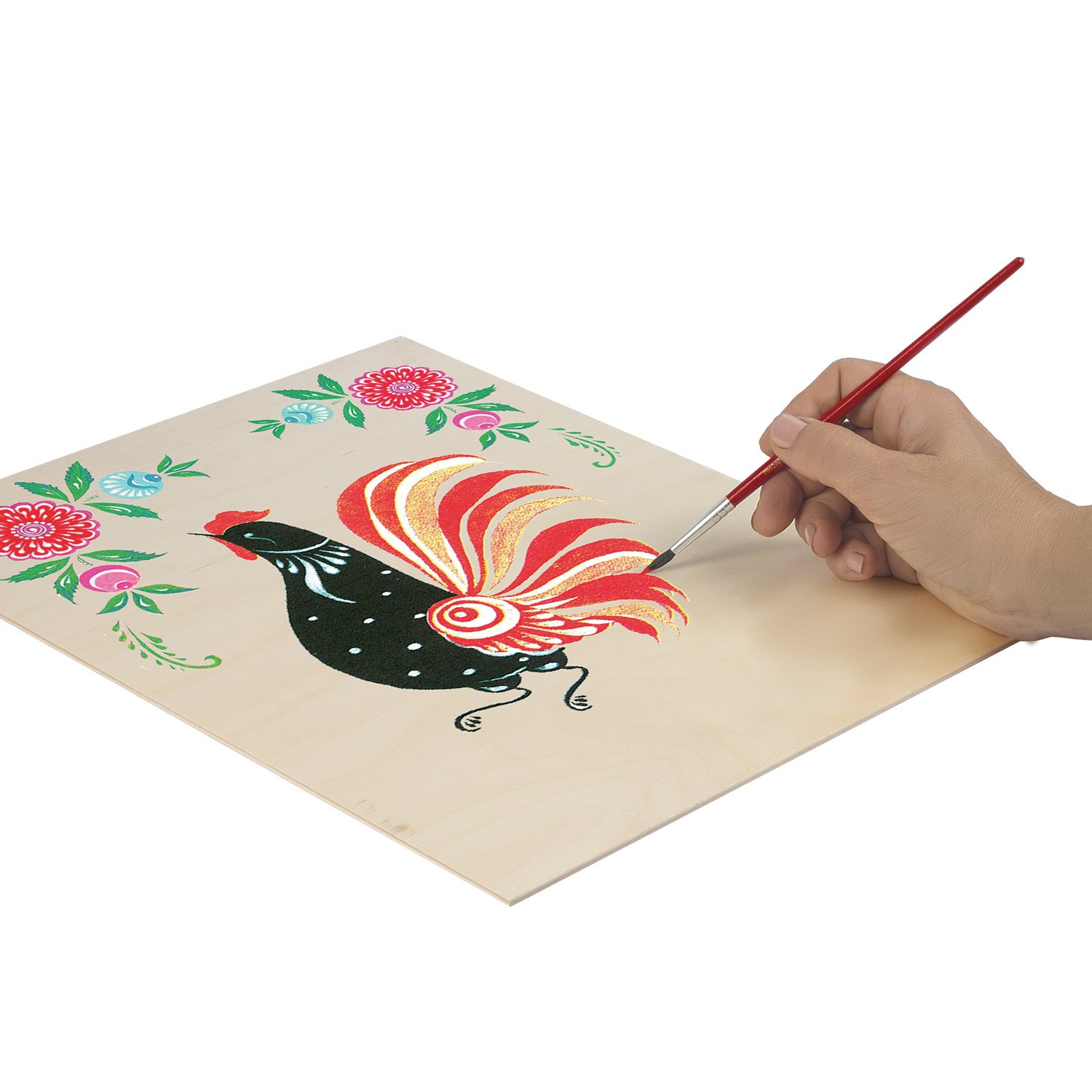 Заготовка прочная, не крошится и легко режется, а потому после проведения художественных работ можно придать изделию любую форму (рекомендуется обработать края лобзиком). Дощечка качественно отшлифована - роспись, выжигание и другие виды работ не доставят никаких хлопот даже начинающему художнику. В набор входит одно деревянное полотно размера А3 и толщиной 3 мм. Сортность фанеры - 1/1 - отличается светлым тоном заготовок и почти полным отсутствием дефектов на поверхности фанеры. Заготовка упакована в термоусадочную пленку, которая предохраняет ее от влаги. В такой упаковке заготовка не отсыреет, не деформируется и будет доставлена до адресата в целости и сохранности.
