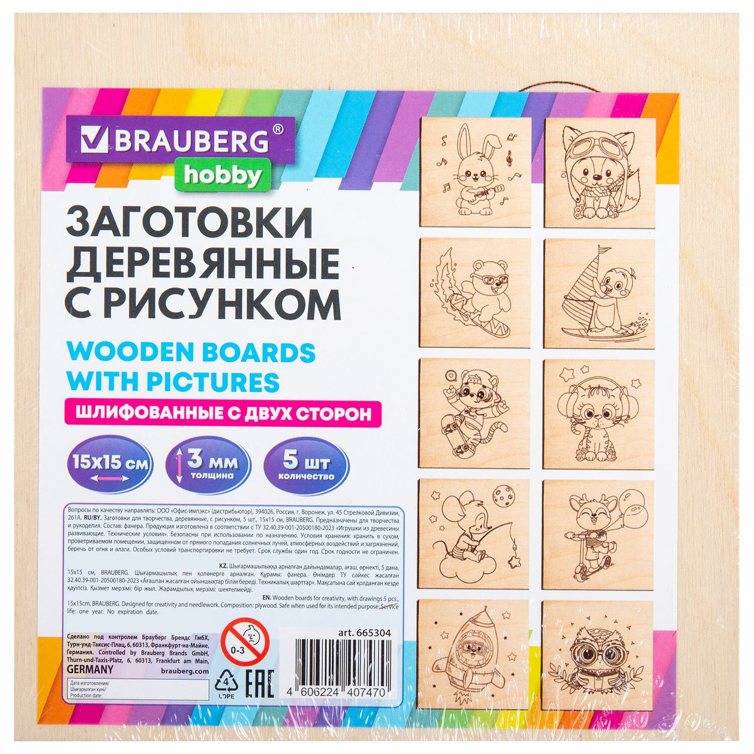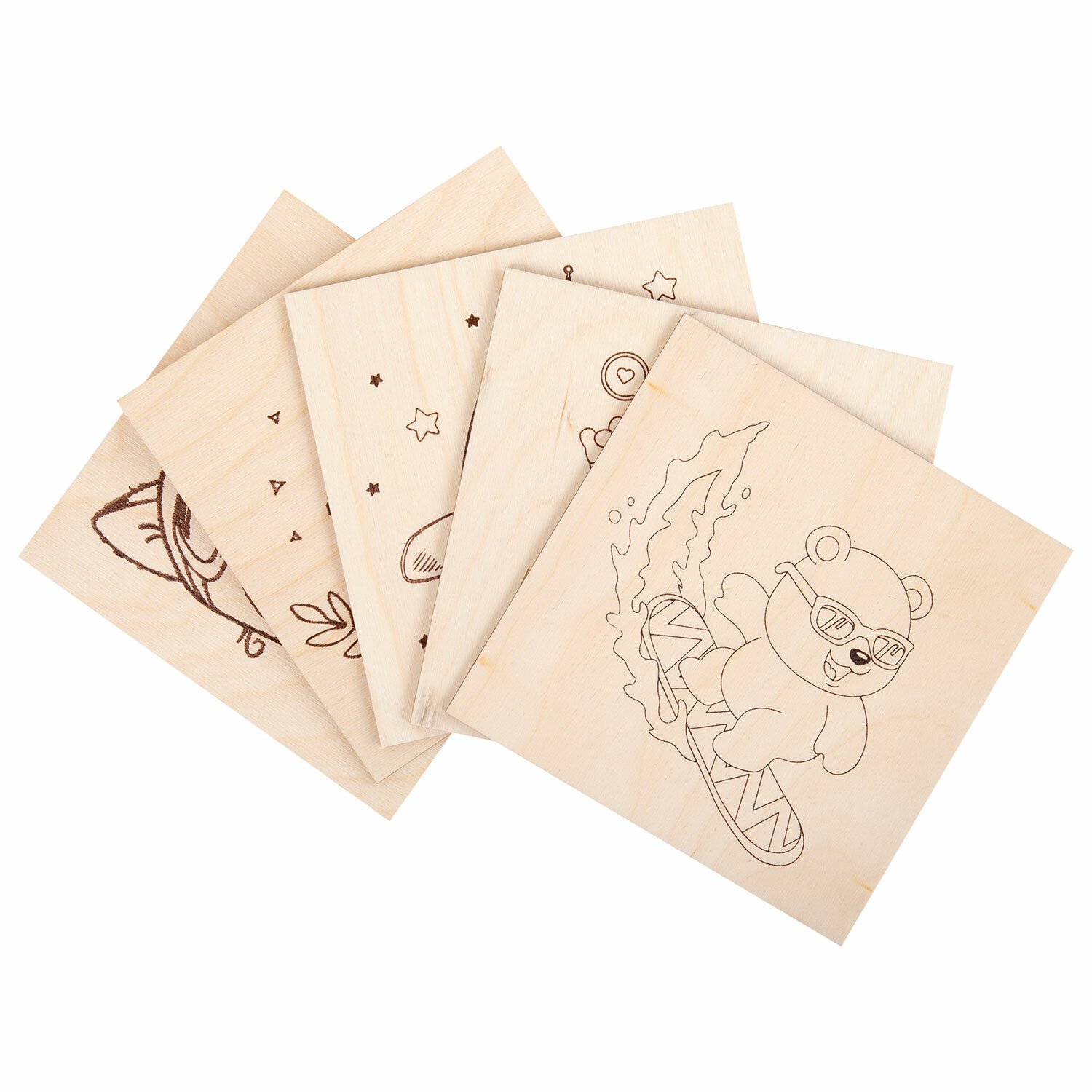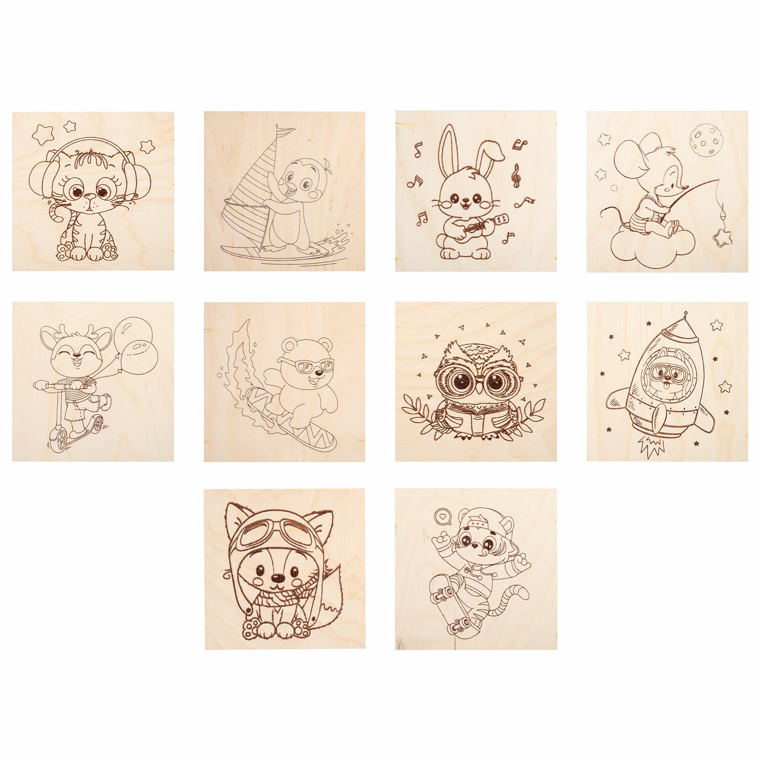 Заготовки деревянные для выжигания "Зверушки", 5 шт., 10 рисунков, 15х15 см, BRAUBERG HOBBY, 665304