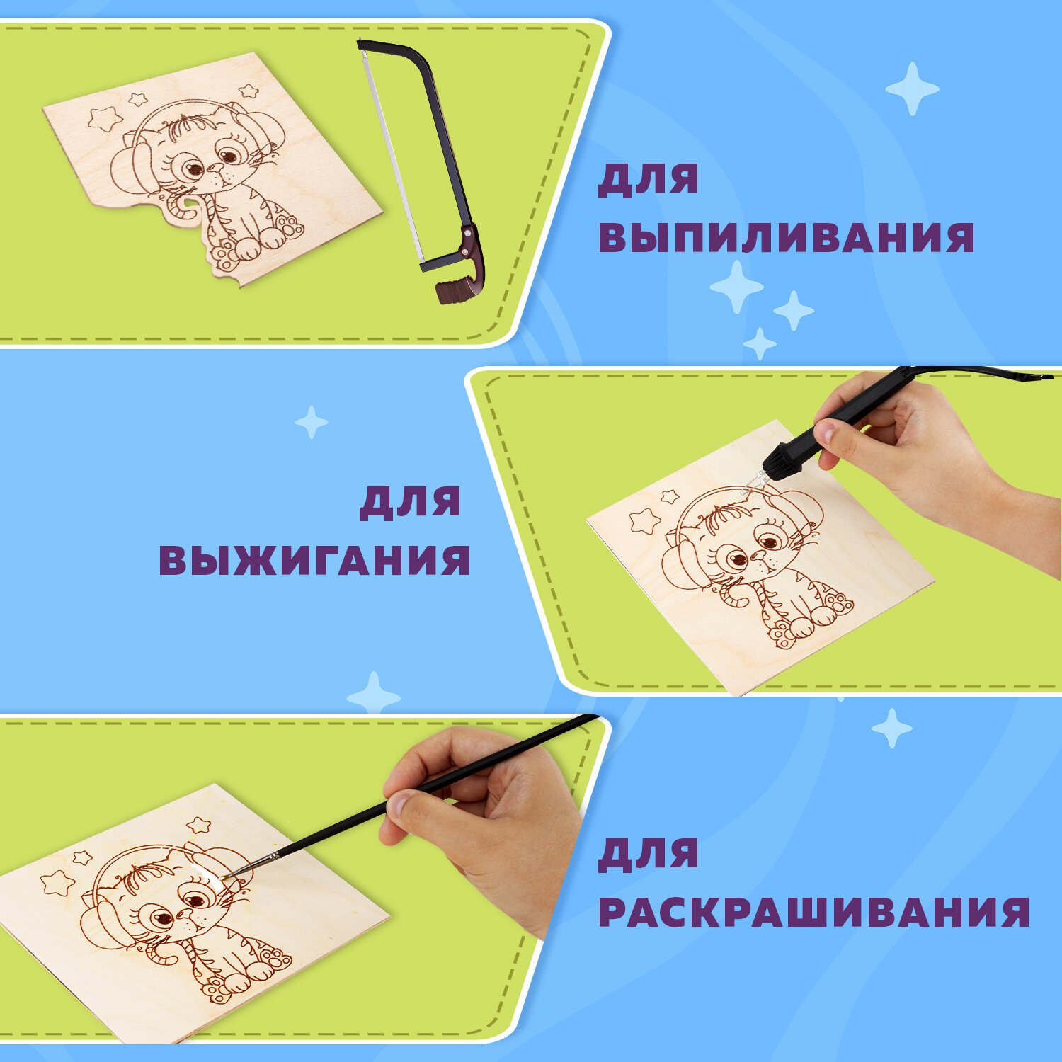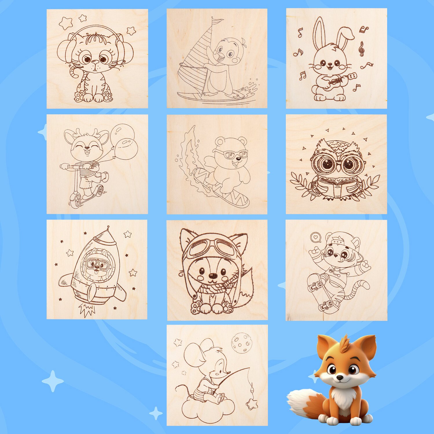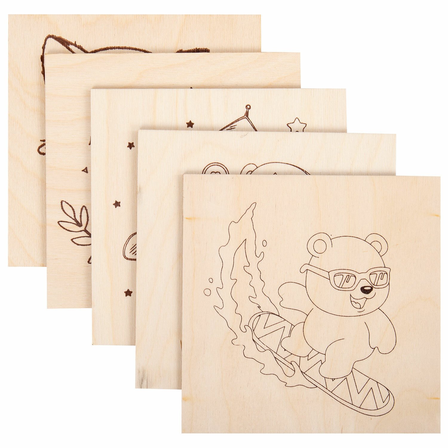 Заготовки деревянные для выжигания "Зверушки", 5 шт., 10 рисунков, 15х15 см, BRAUBERG HOBBY, 665304