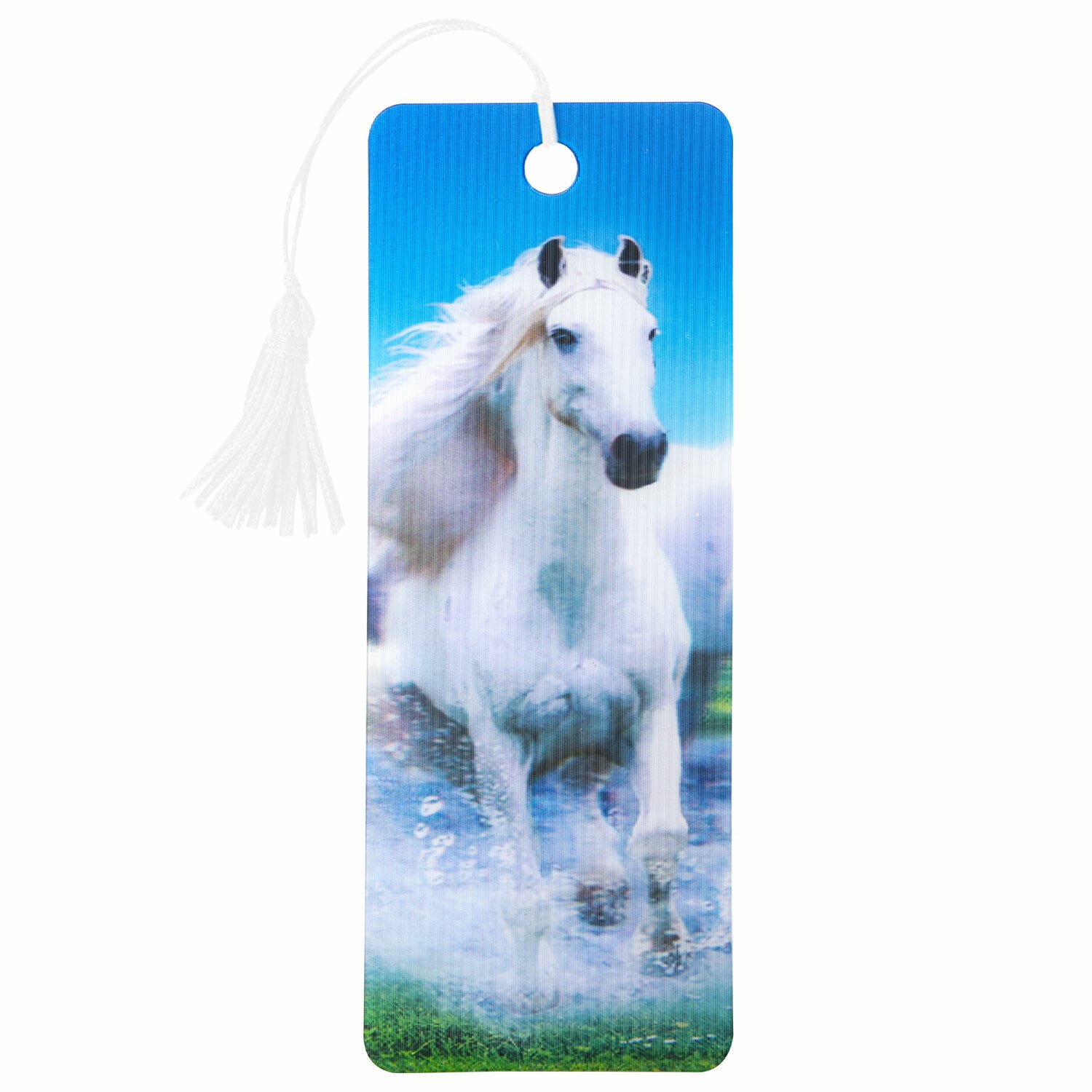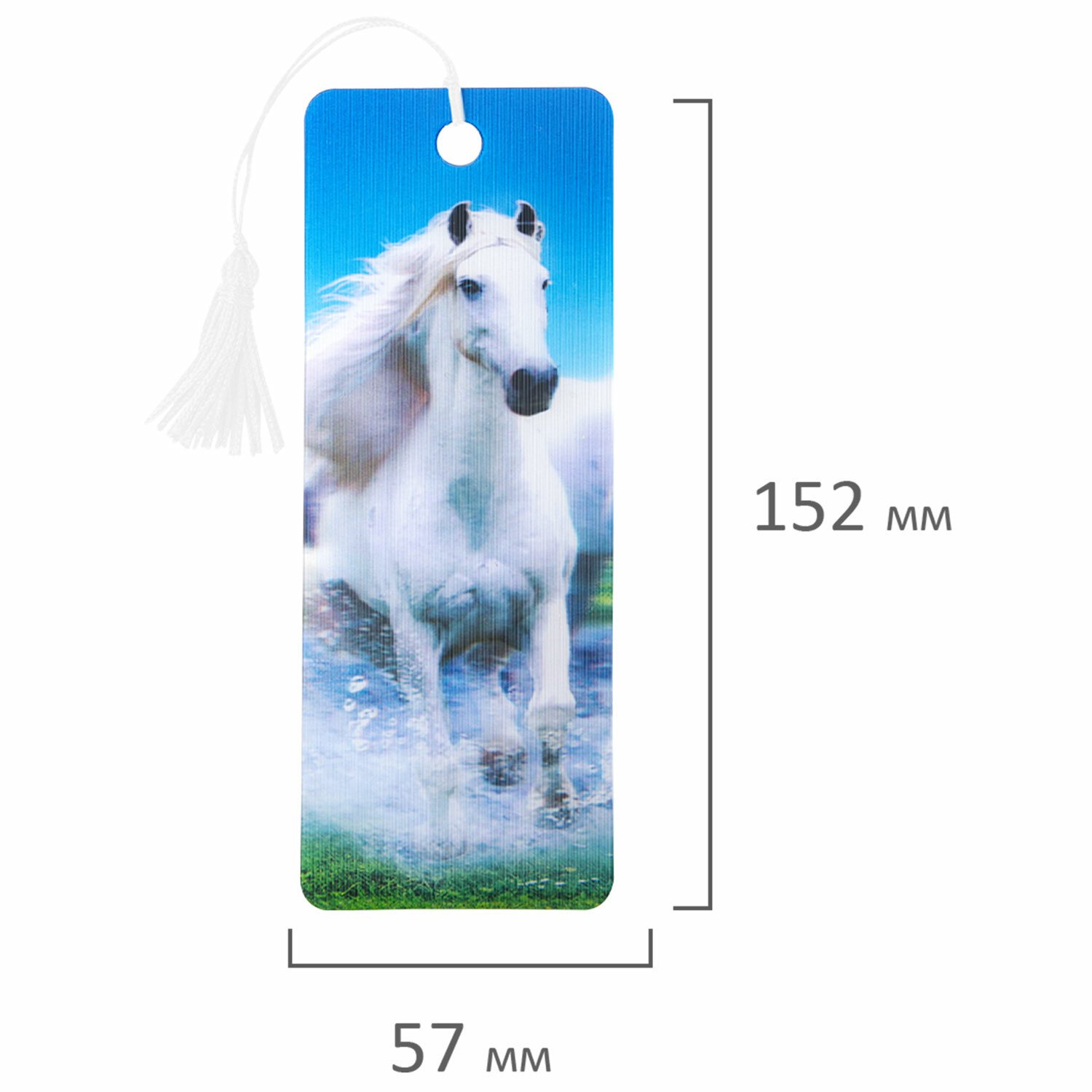 Закладка для книг 3D, BRAUBERG, объемная, "Белый конь", с декоративным шнурком-завязкой, 125753