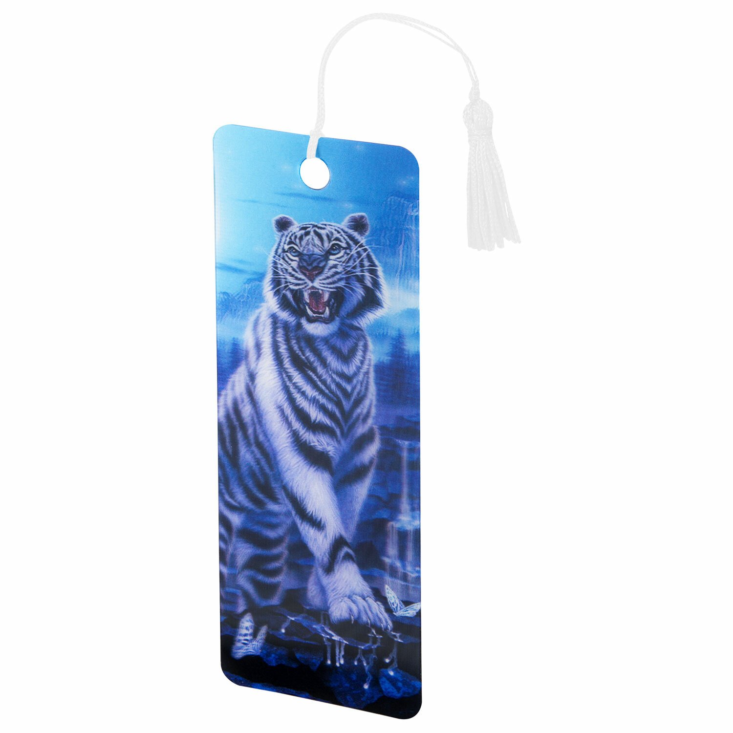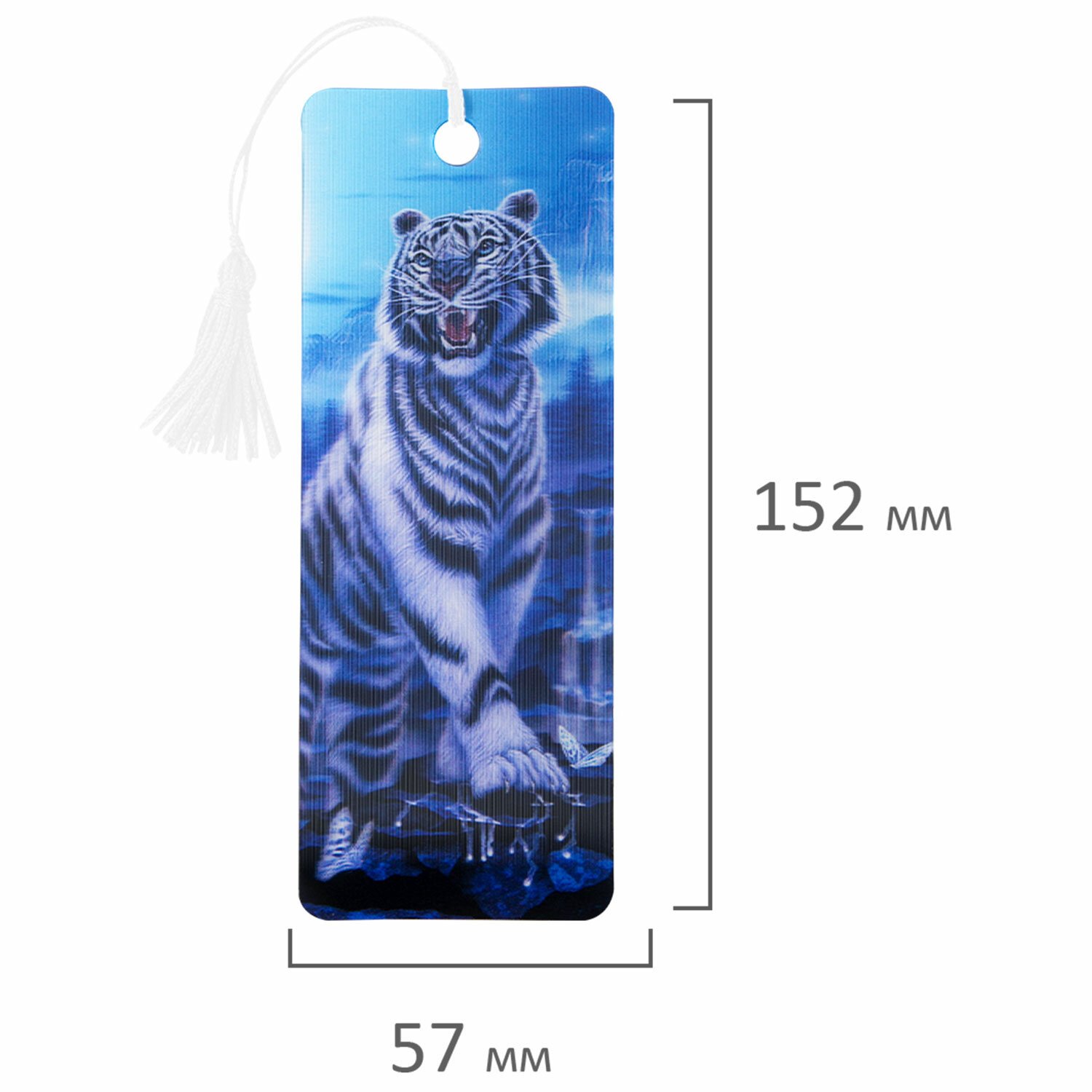 Закладка для книг 3D, BRAUBERG, объемная, "Белый тигр", с декоративным шнурком-завязкой, 125754