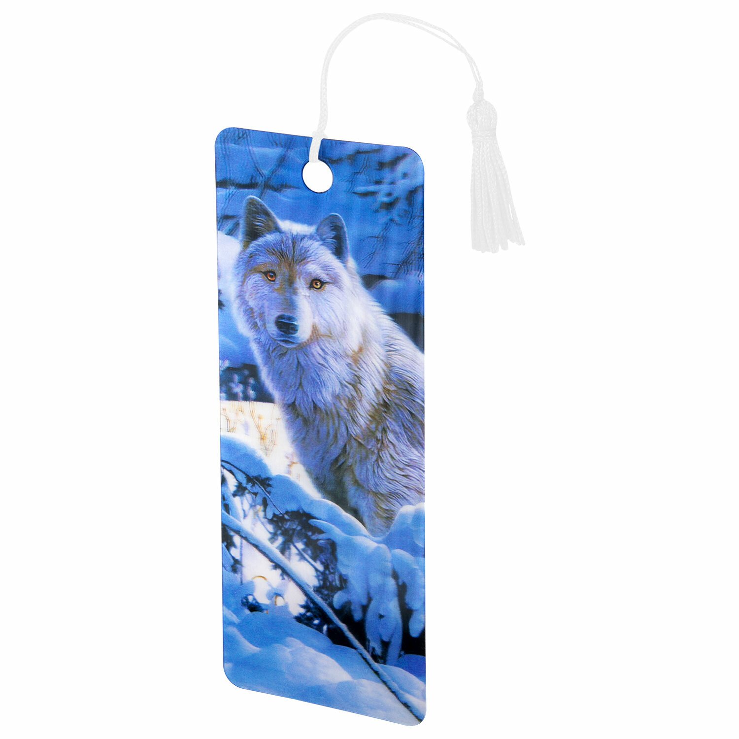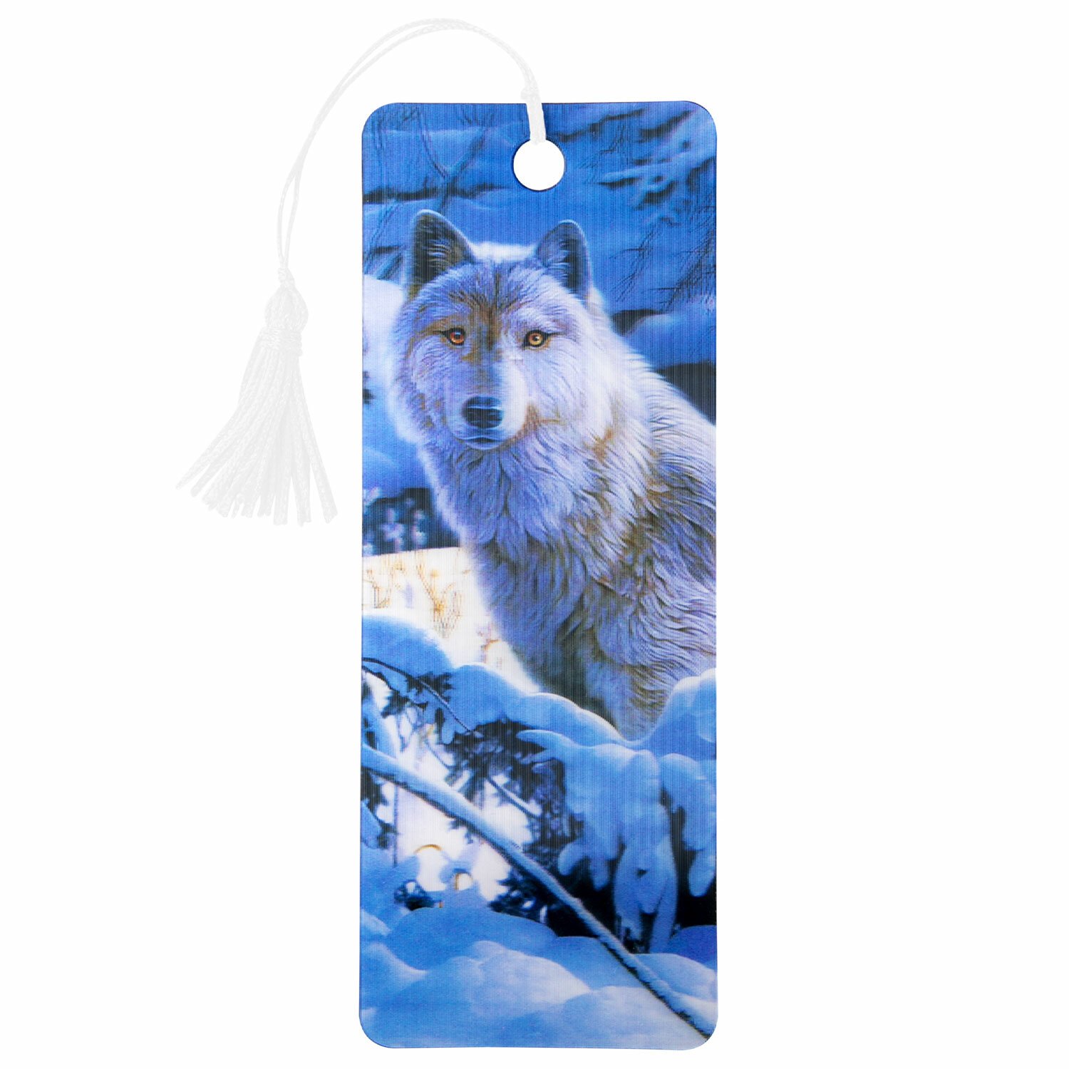 Закладка для книг 3D, BRAUBERG, объемная, "Белый волк", с декоративным шнурком-завязкой, 125752