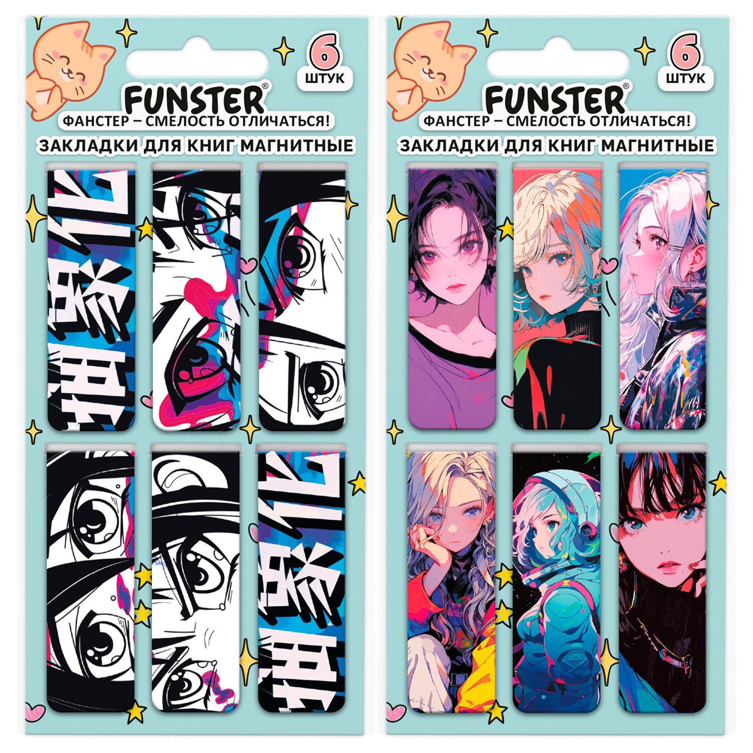 Закладки для книг МАГНИТНЫЕ, "АНИМЕ", набор 12 штук, 60x20 мм, FUNSTER, 116655