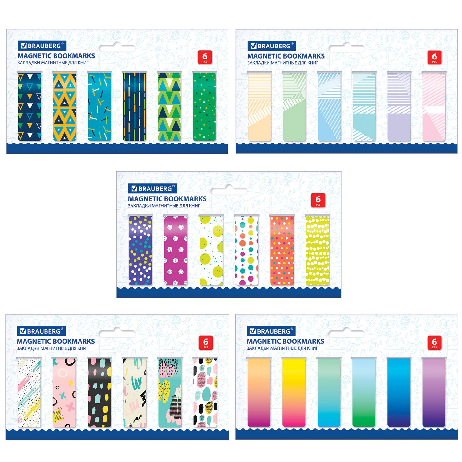 Закладки для книг МАГНИТНЫЕ, "MIX 2", набор 30 шт., 60x20 мм, BRAUBERG, 113178