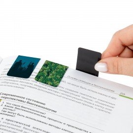 Закладки выполнены из картона и винила, надежно крепятся на листе благодаря магнитной полосе. Позволяют быстро найти нужную страницу. Удобны в применении и даже спустя большое количество времени будут выглядеть аккуратно. Размер закладки - 35х25 мм. В наборе 6 штук.