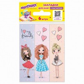 Закладки для книг с магнитом FASHION GIRLS, набор 6 шт., блестки, 25x196 мм, ЮНЛАНДИЯ, 113443