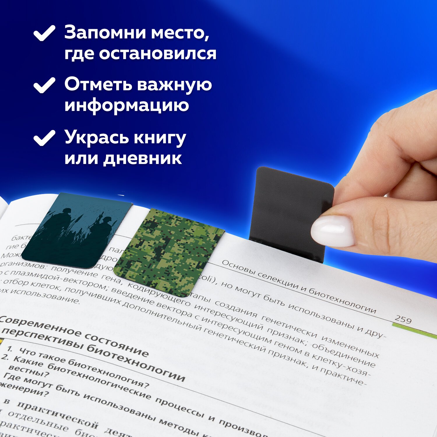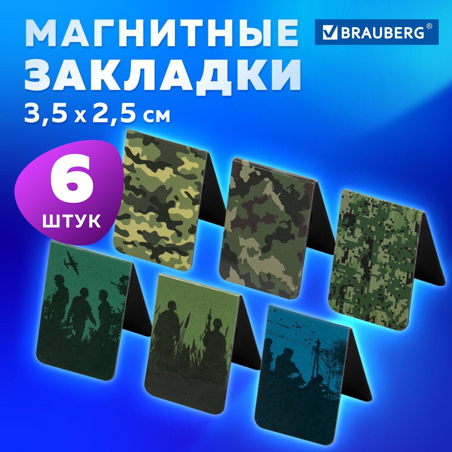 Закладки для книг МАГНИТНЫЕ, "MILITARY", набор 6 шт., 35х25 мм, BRAUBERG, 113164
