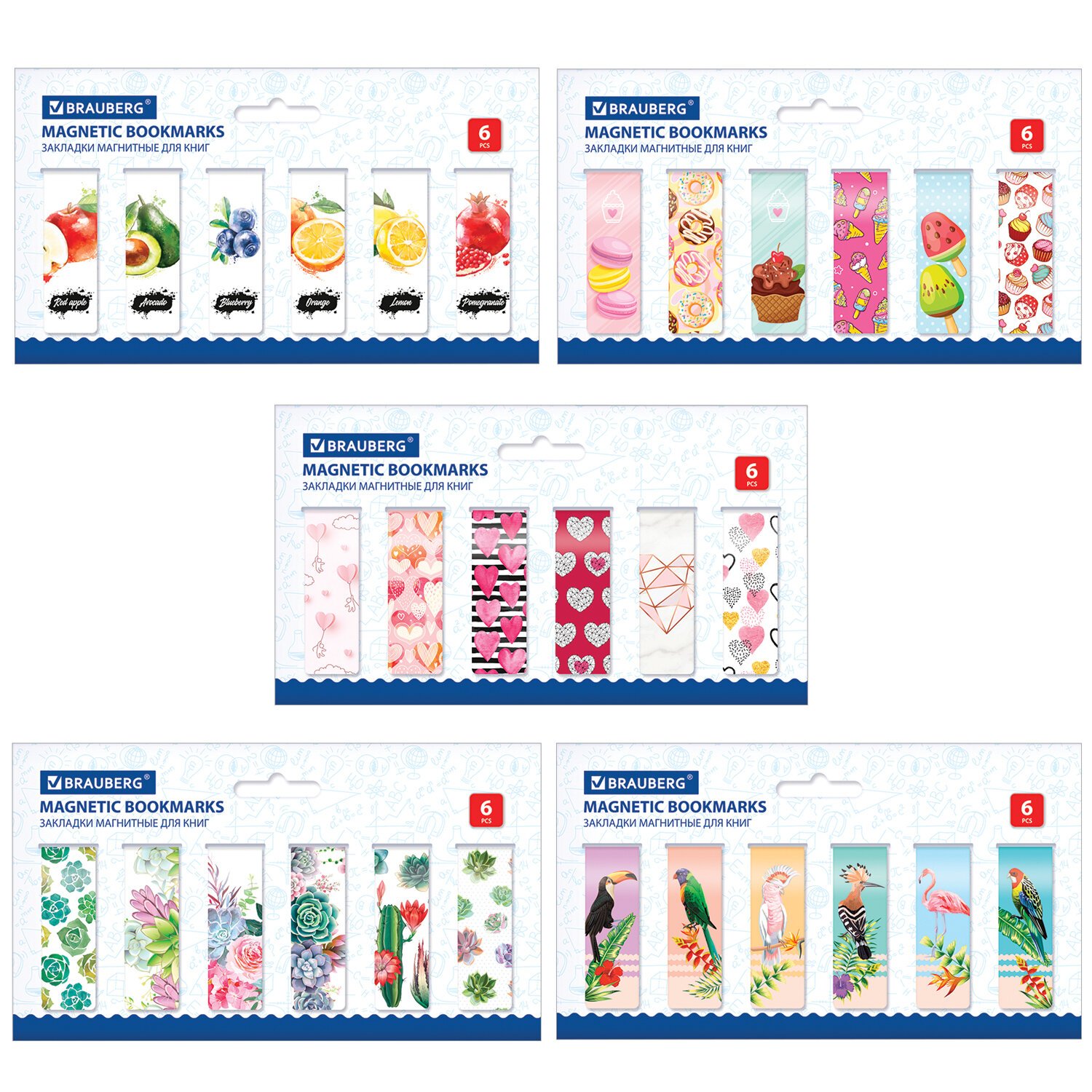 Закладки для книг МАГНИТНЫЕ, "FLOWERS", набор 6 шт., 32х28 мм, BRAUBERG, 113168