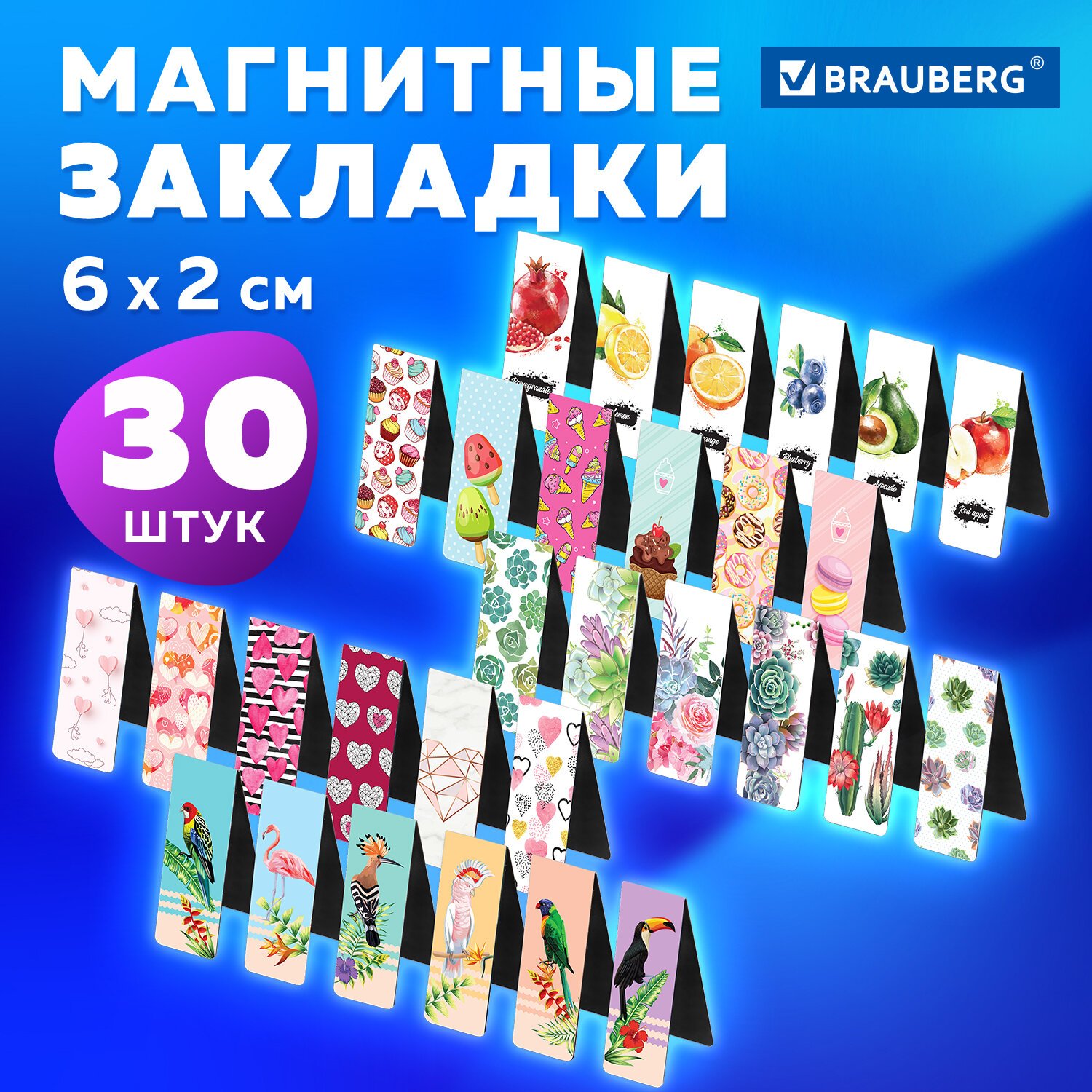Закладки для книг МАГНИТНЫЕ, "MIX", набор 30 шт., 60x20 мм, BRAUBERG, 113175
