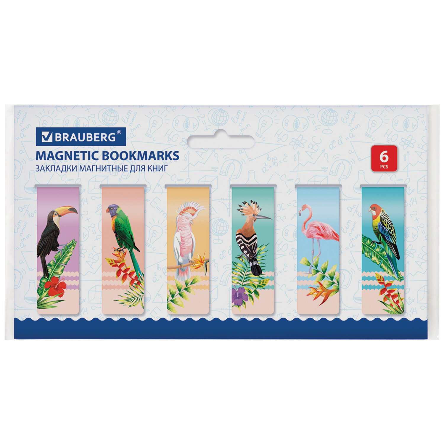 Закладки для книг МАГНИТНЫЕ, "FLAMINGO", набор 6 шт., 35x25 мм, BRAUBERG, 113165