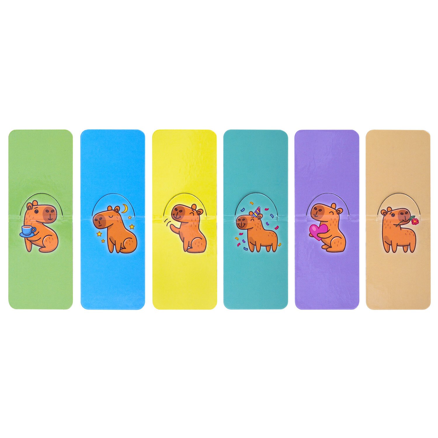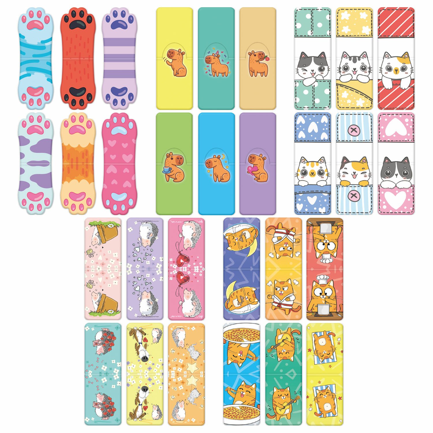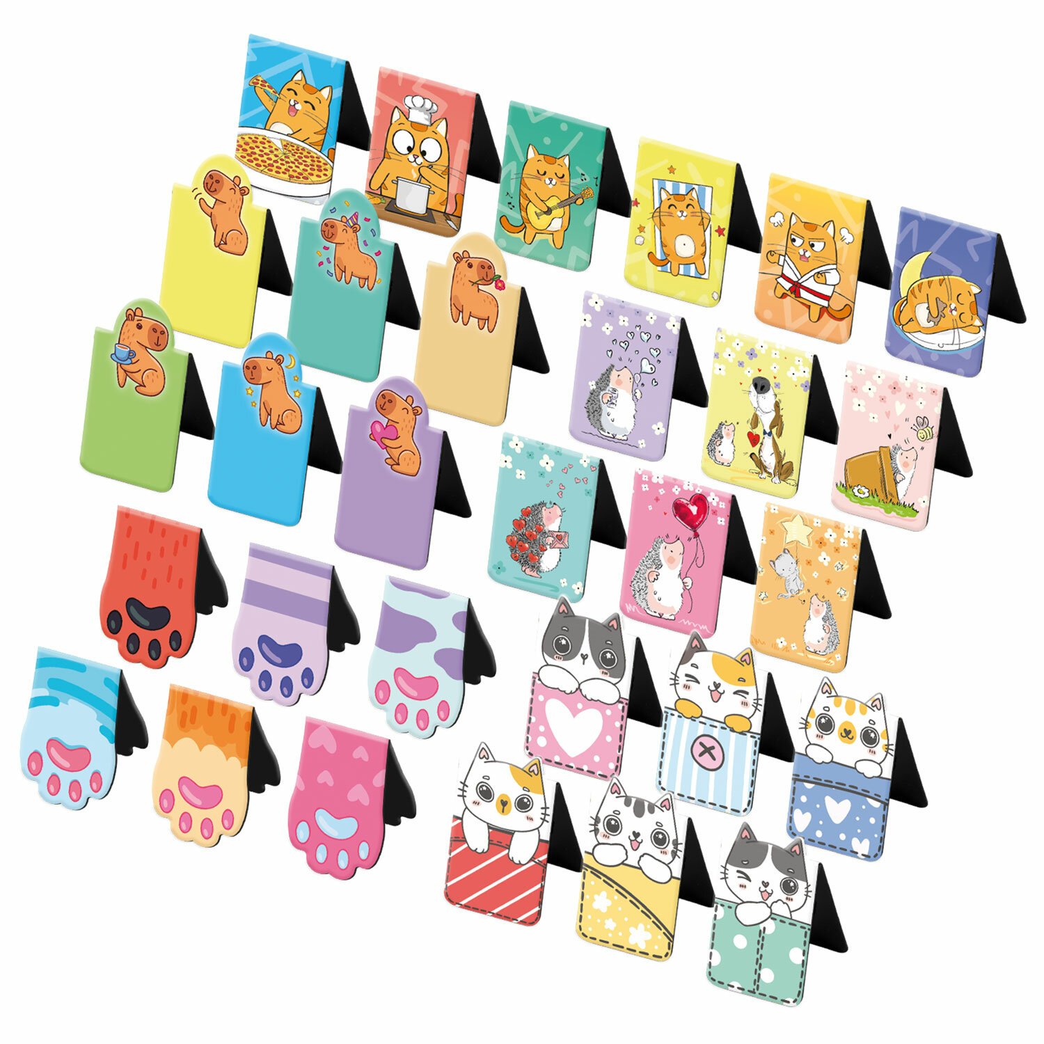 Закладки выполнены из картона и винила, надежно крепятся на листе благодаря магнитной полосе. Позволяют быстро найти нужную страницу. Удобны в применении и даже спустя большое количество времени будут выглядеть аккуратно. Размер закладки в сложенном виде - 35x25 мм. В наборе 30 штук, яркие дизайны.