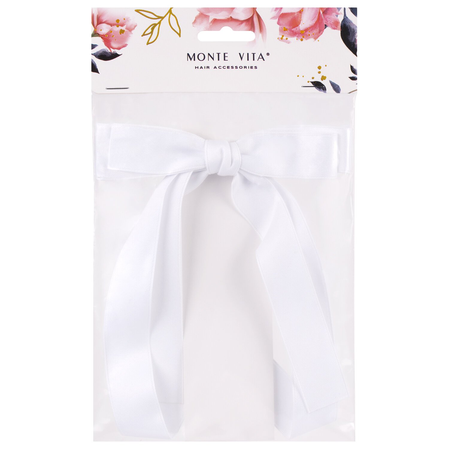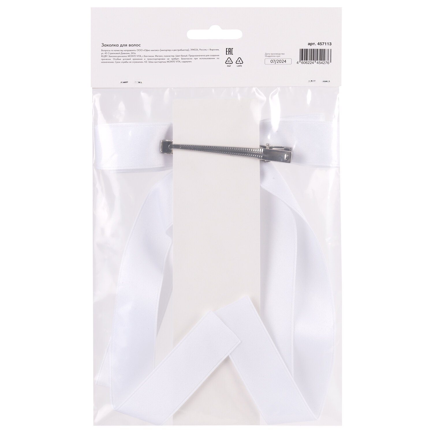 Заколка для волос аллигатор с бантиком, с длинными хвостиками, белый, MONTE VITA 457113